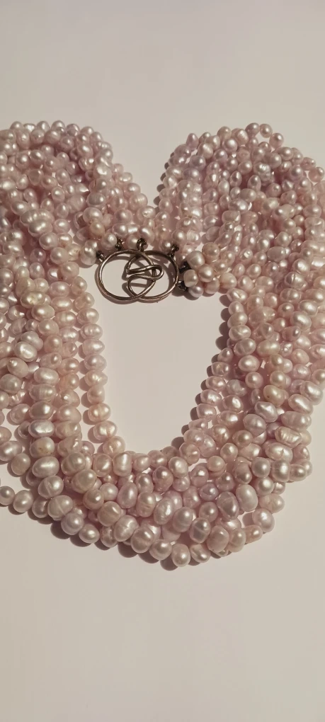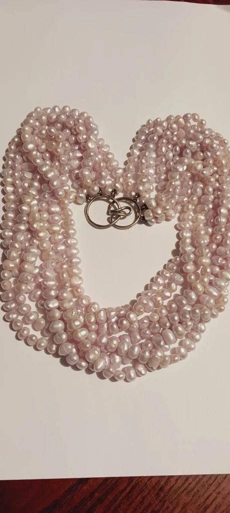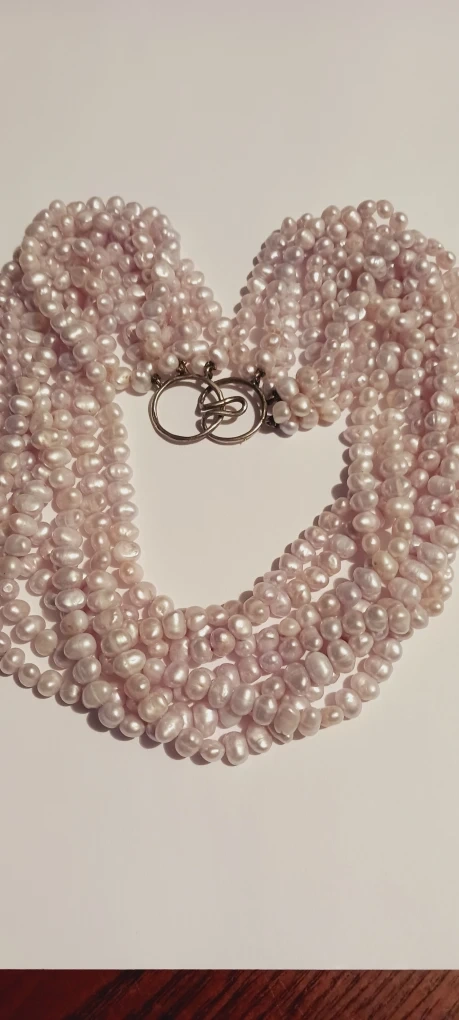1000+Absolutely Gorgeous Sterling Silver 925 Clasp Genuine Freshwater Pearl 7 Strands Pearl Necklace. Beautiful pearl strand necklace! It has multiple strands of light pink pearls and a sterling silver clasp. It's in great condition and ready to add a touch of elegance to any outfit. 17" long. Excellent condition, like new !! ALL MY PRICES ARE NEGOTIABLE !!!