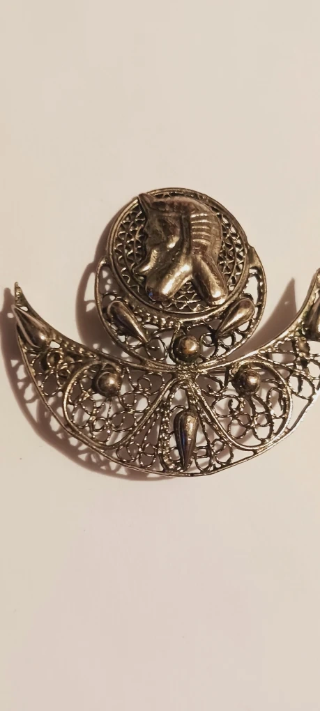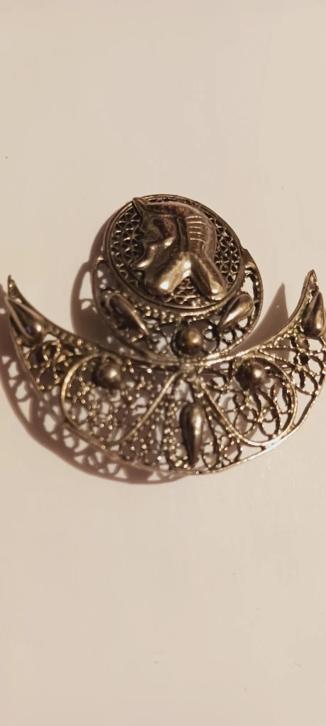 1000+Egyptian Revival Gorgeous Vintage Sterling Silver Filigree Brooch.It features a pharaoh design within a filigree setting. It's a unique piece of jewelry! 2"×2". Excellent condition. ALL MY PRICES ARE NEGOTIABLE !!
