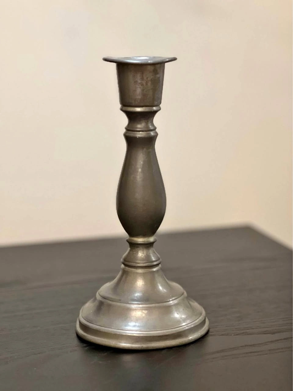 This is a vintage pewter 8.25” candlestick holder by Woodbury Pewterers.