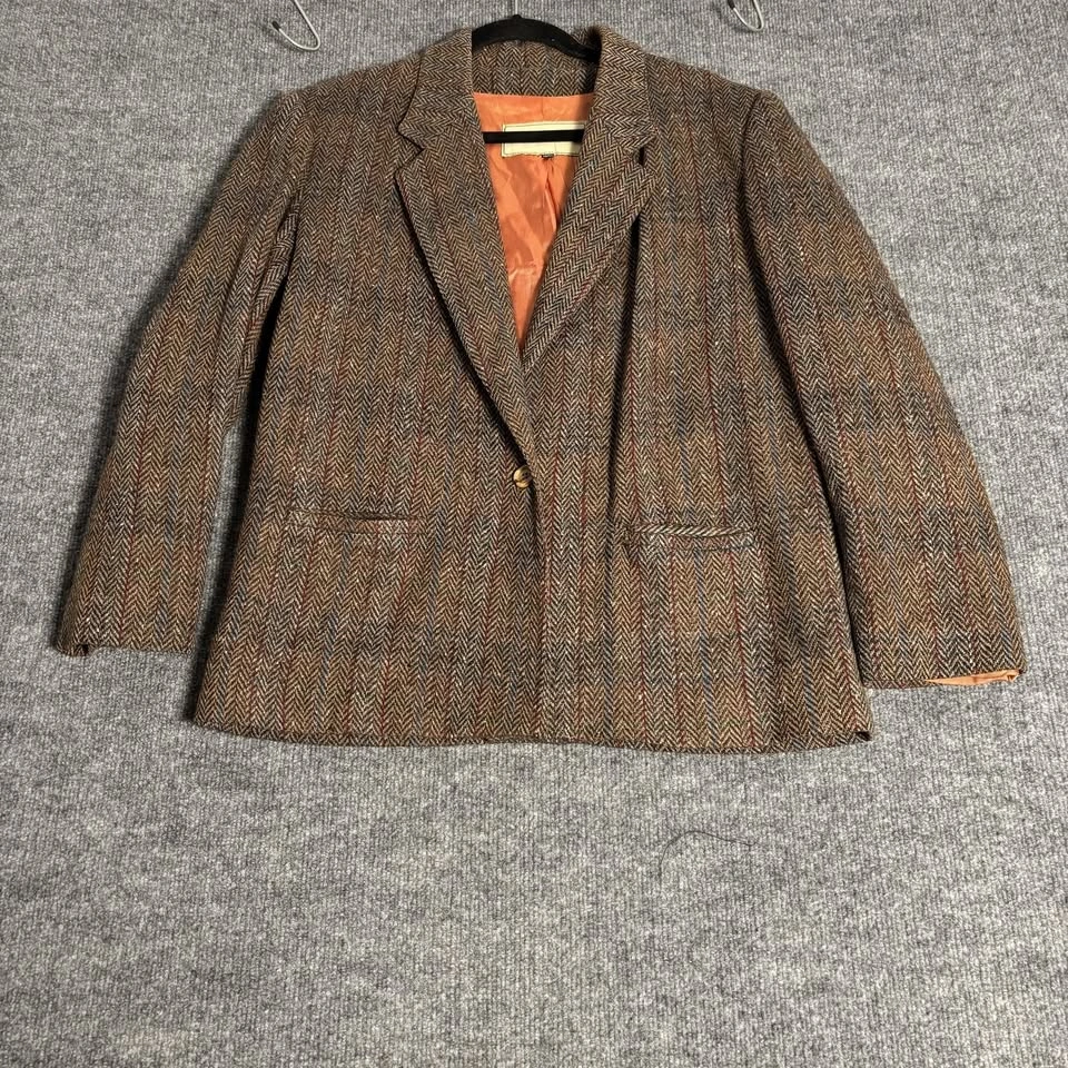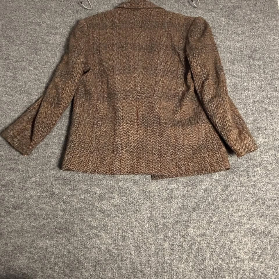 Vintage Oscar de la Renta Blazer Womens 13/14 Brown Wool Herringbone Tweed Jacket 90s. Gently worn, no visible flaws. Light general wear with no major defects noted.