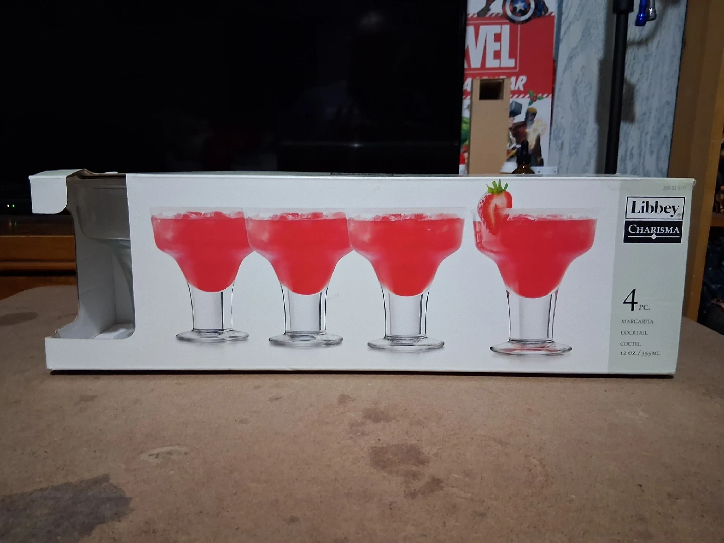 Selling a set of 4 Libbey Charisma margarita cocktail glasses! These glasses are 12 oz / 355 mL each and are perfect for your next cocktail night
