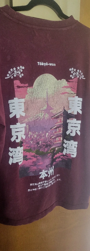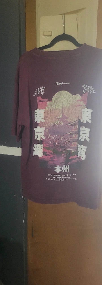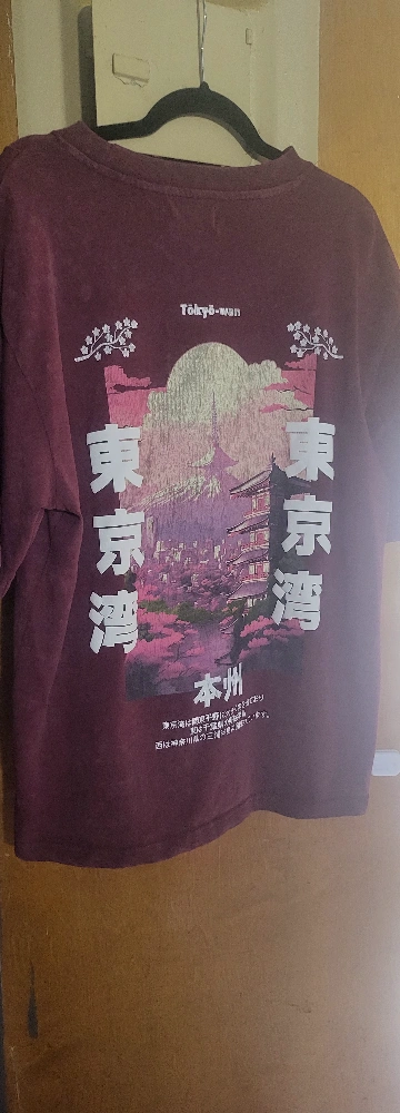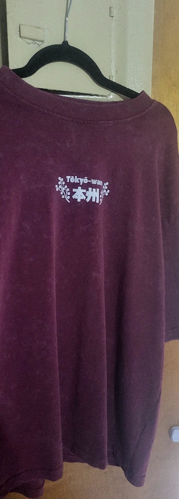 62Here's a cool t-shirt featuring a Tokyo-Wan graphic! It's a maroon color with a detailed print on the back. Perfect for anyone who loves Japanese-inspired designs