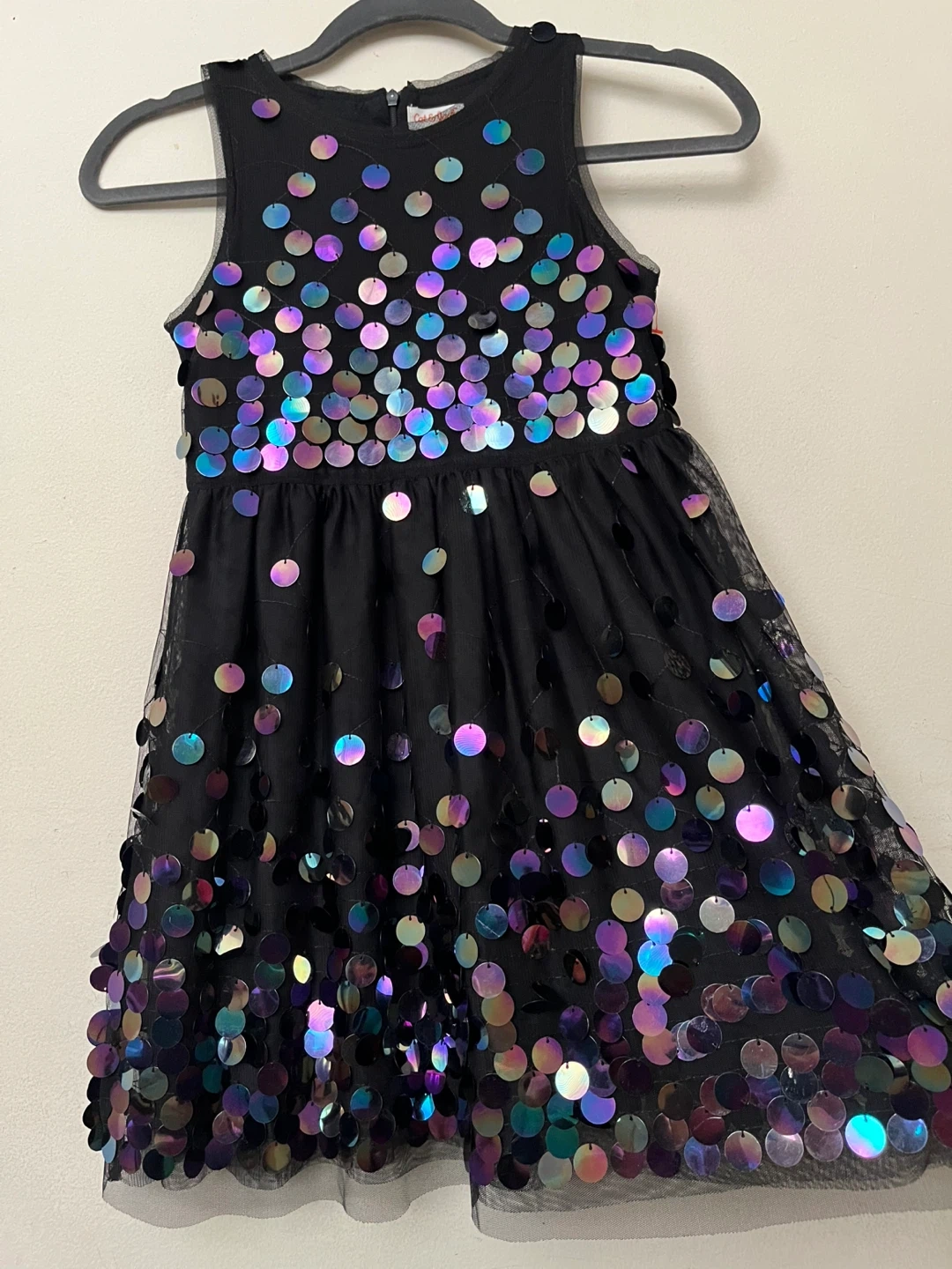 60Cat & Jack black dress with iridescent sequins! This dress is perfect for parties or special occasions. It's in great condition and ready for a new home