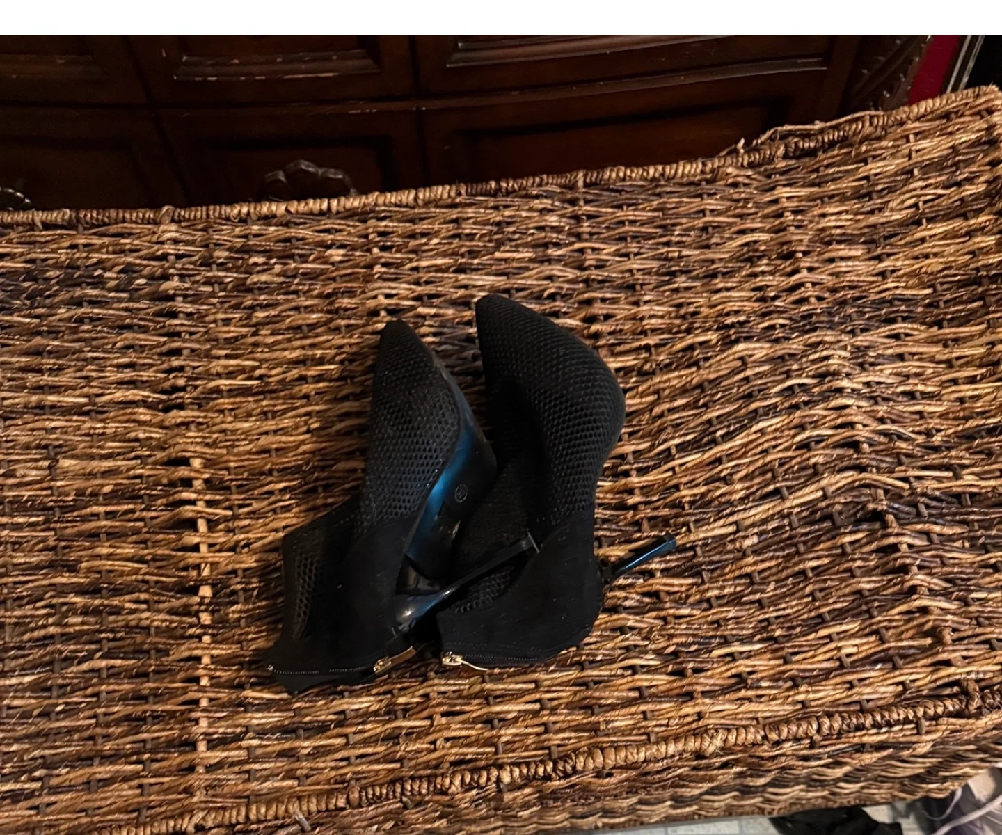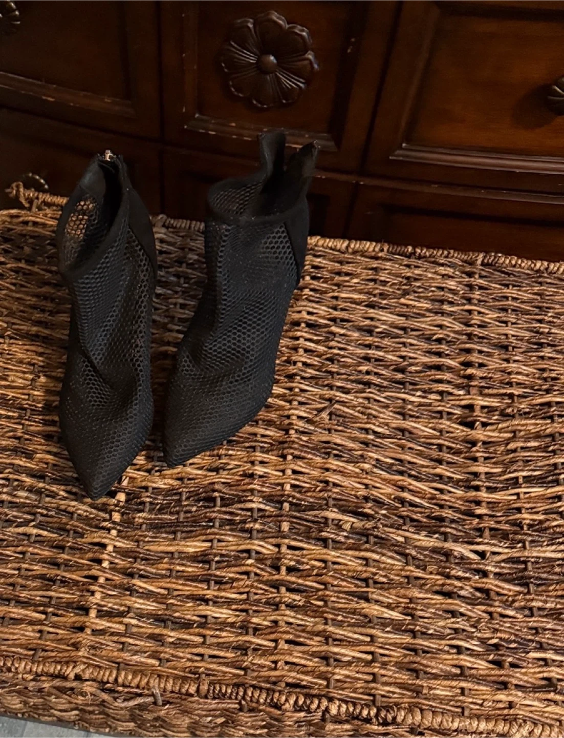 Buy & SellBlack Ankle BootsBlack Ankle Boots$7These are a pair of black ankle boots. They have a mesh-like texture and a stiletto heel. They are in good conditionConditionLike newSize6 1/2WHERE TO MEETCheck LocationView MapSELLERverifiedEvelynLongwood650 reviews0 chats·1 favorites·29 views