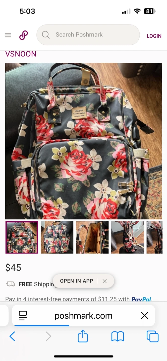 Selling a VSNOON diaper backpack with a beautiful floral design! It's in great condition and ready for a new home. This backpack is perfect for carrying all your baby essentials in style. Originally listed for $45