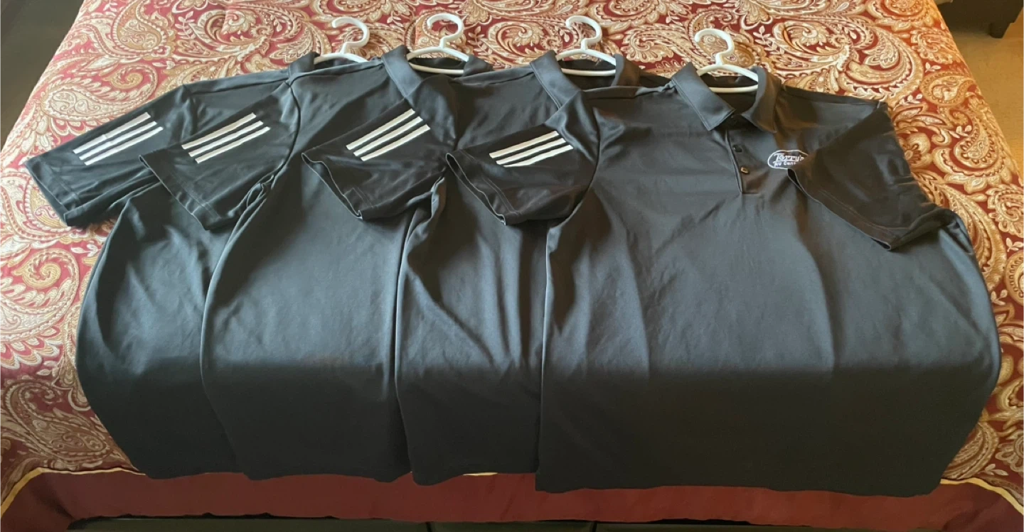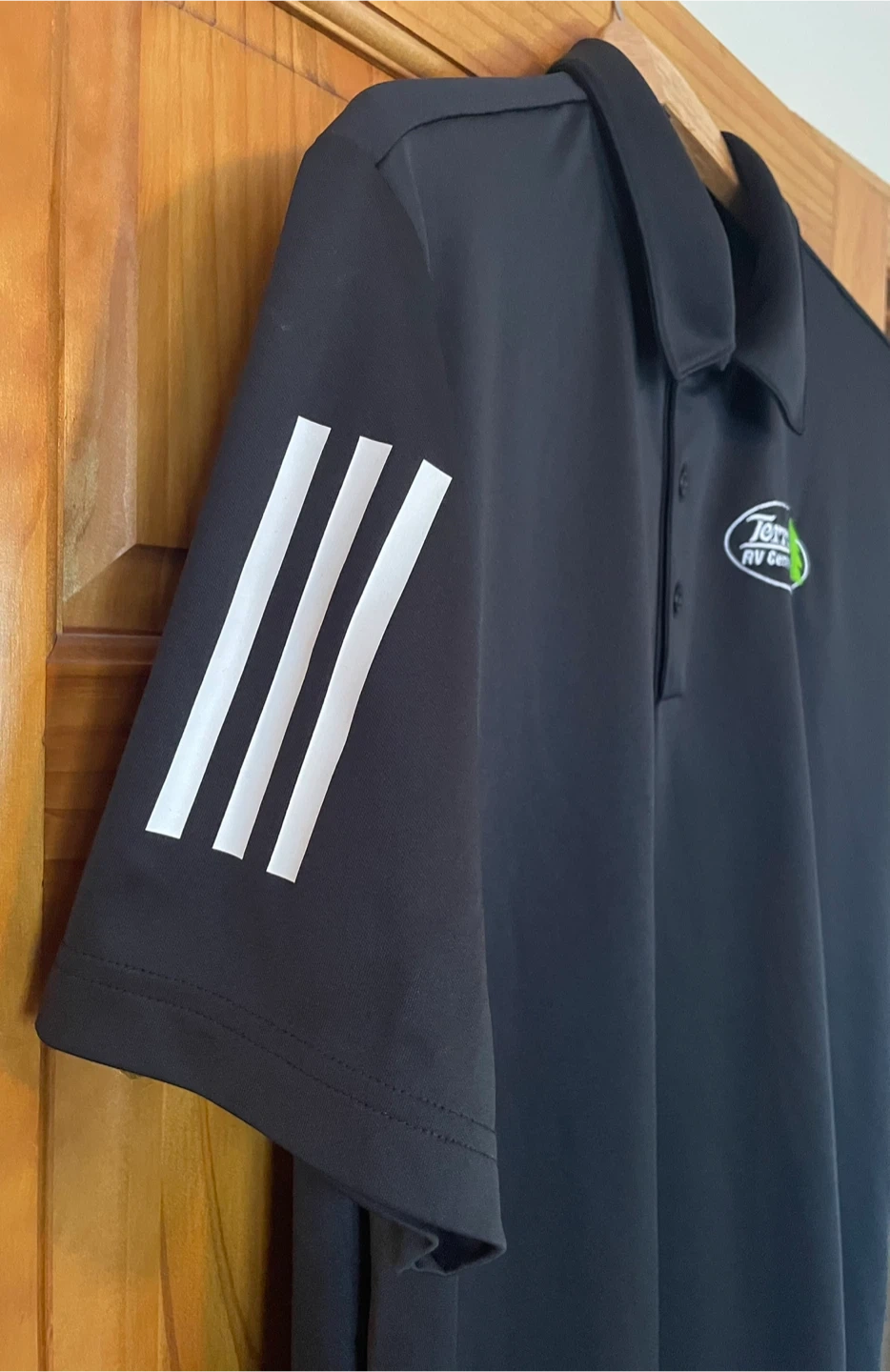 65I’m selling 4 black Adidas polo shirts in size men’s large. They features the classic Adidas three-stripe design on the sleeves and a vintage Terry's RV Center logo. Great for casual wear or a sporty look! They are a modern/athletic fit. Very comfortable and in excellent condition, like new. No rips, tears, stains or odors. $40.00 for the 4 or available individually at $10.00 each.