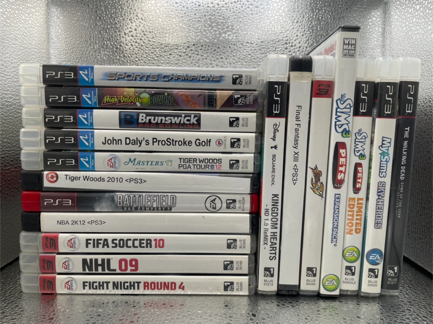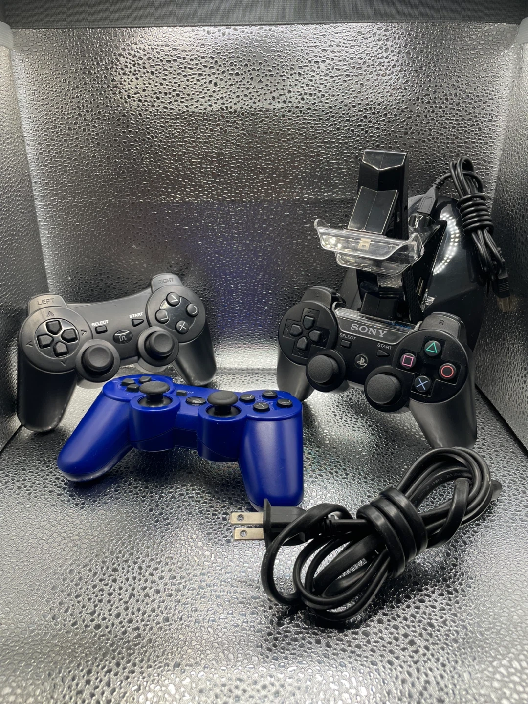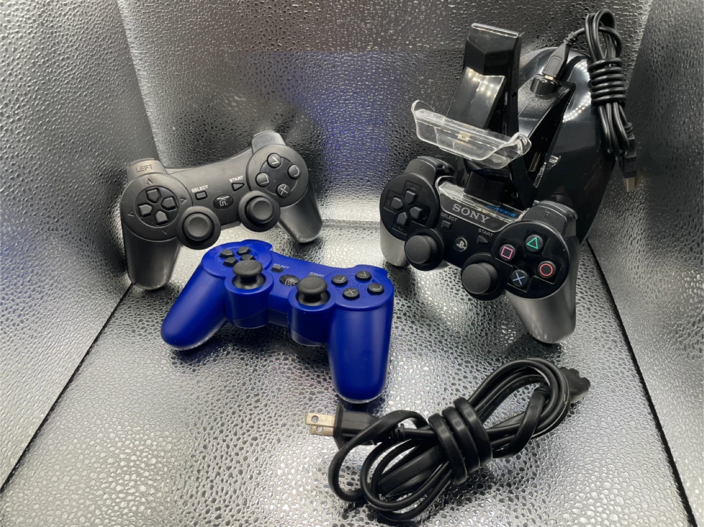 75Selling a PlayStation 3 (PS3) console remote controls, and a bunch of games. It shows some signs of wear, including scratches on the exterior bottom only .Please see the photos for details!