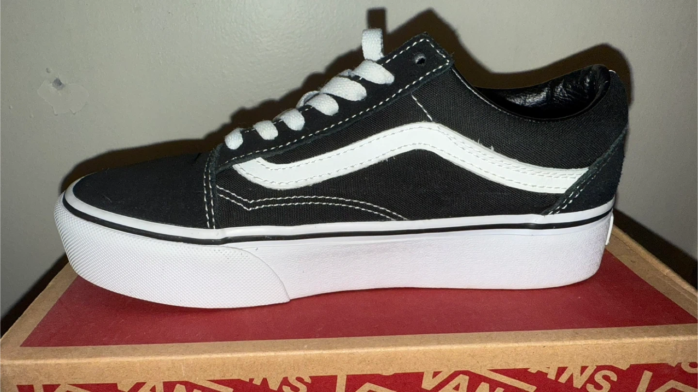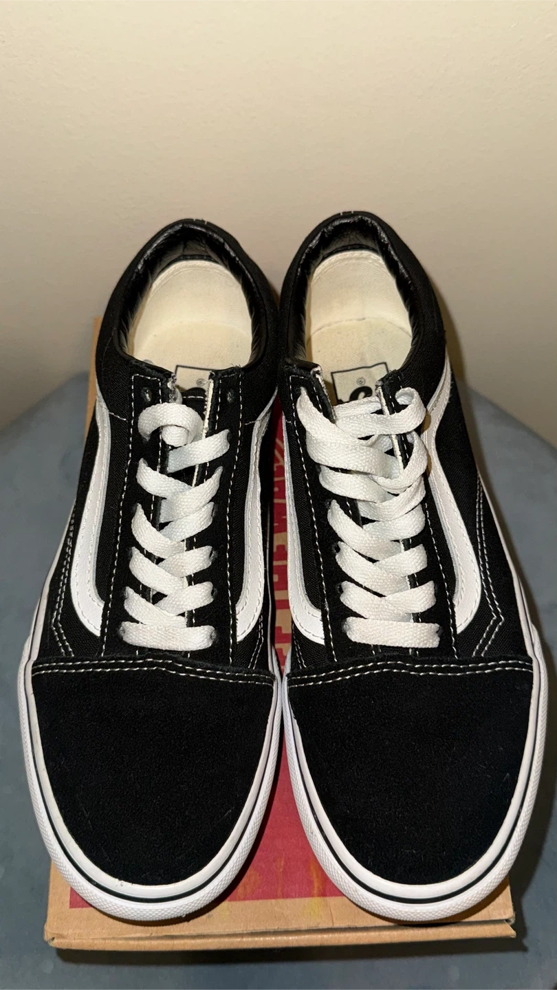 Selling a pair of Vans Old Skool Platform shoes in black and white. They are a women's size US 6.5/5 men’s. Comes with the original box!