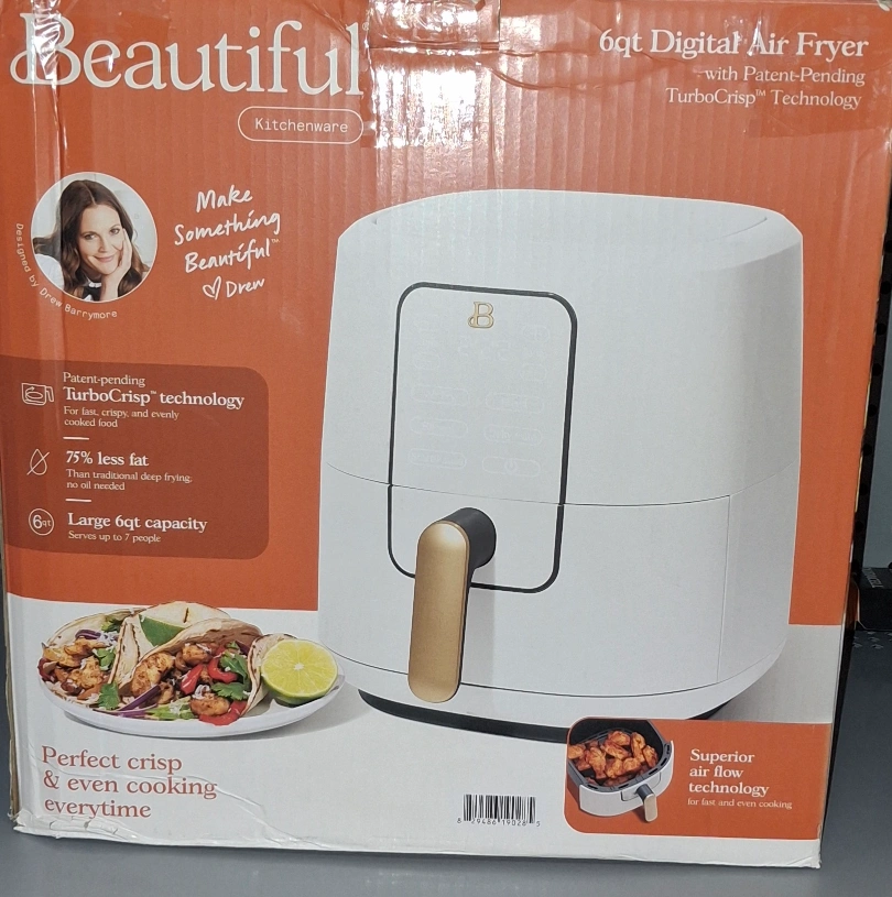 Selling a brand new Beautiful 6qt Digital Air Fryer still in its original box! This air fryer features patent-pending TurboCrisp™ technology for fast, crispy, and evenly cooked food. It uses 75% less fat than traditional deep frying and has a large 6qt capacity, serving up to 7 people. Enjoy perfect crisp and even cooking every time with superior air flow technology