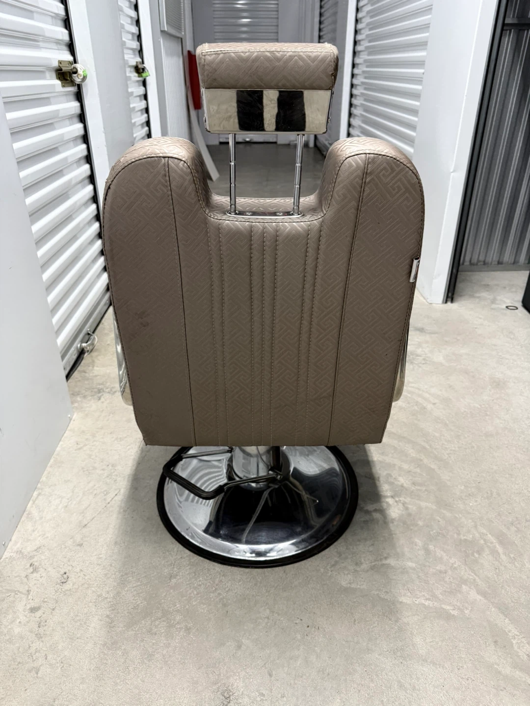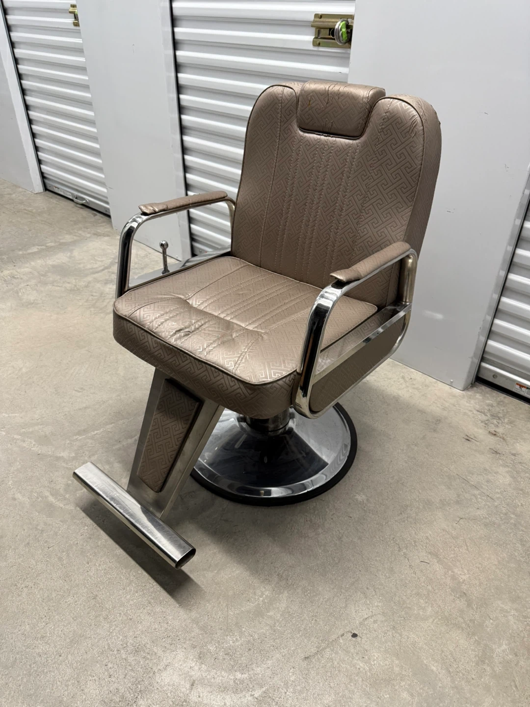 Vintage Barber Chair - Tan - Chrome Base Mid Century Style