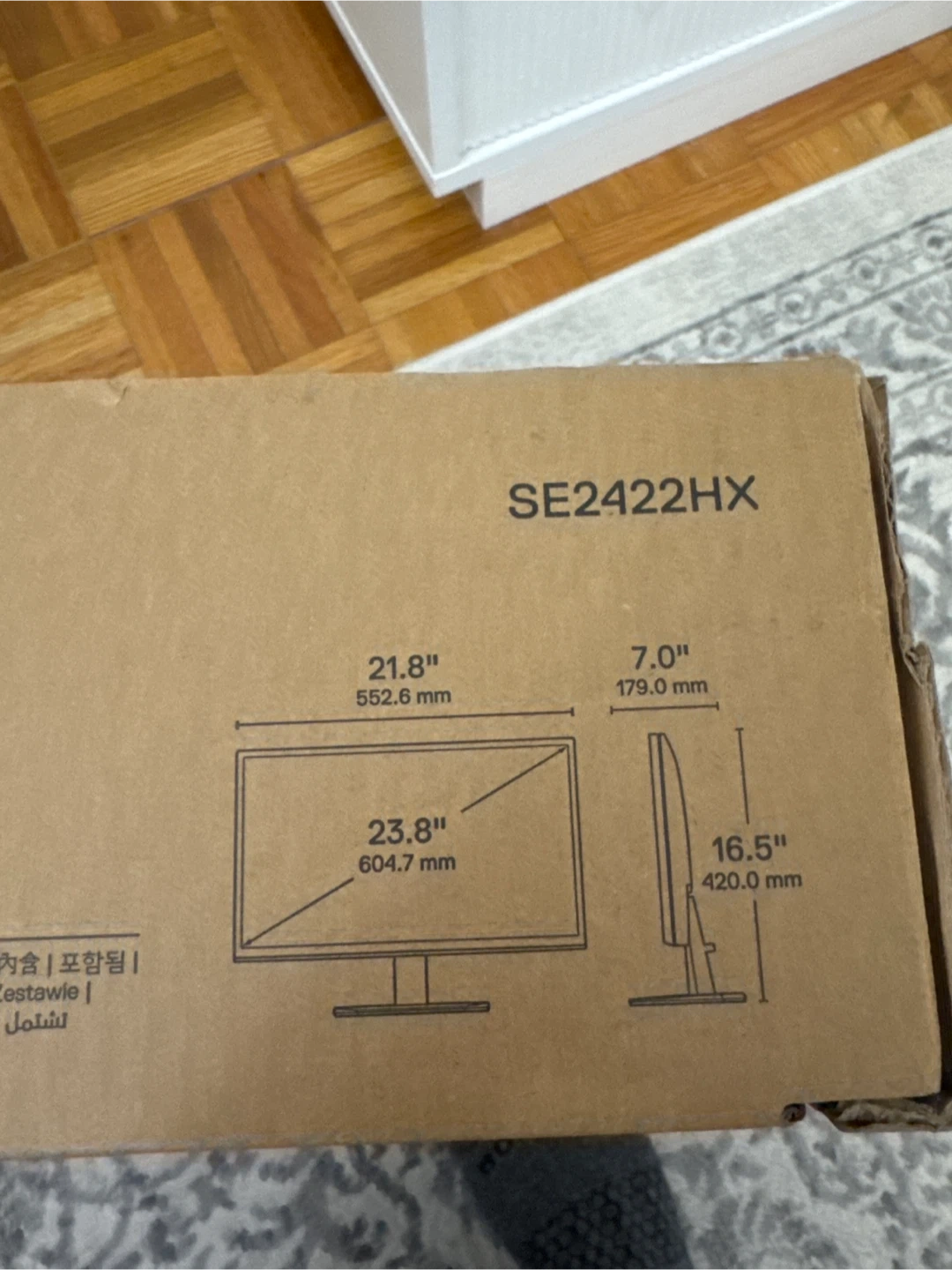 81Selling a Dell 24 Monitor, model SE2422HX. It's in great condition and comes with its original box. The monitor has a screen size of 23.8 inches. Perfect for home or office use! HDMI cord not included Works great, just moving out of state and can’t bring it with me. Pick up in fidi, cash or Venmo