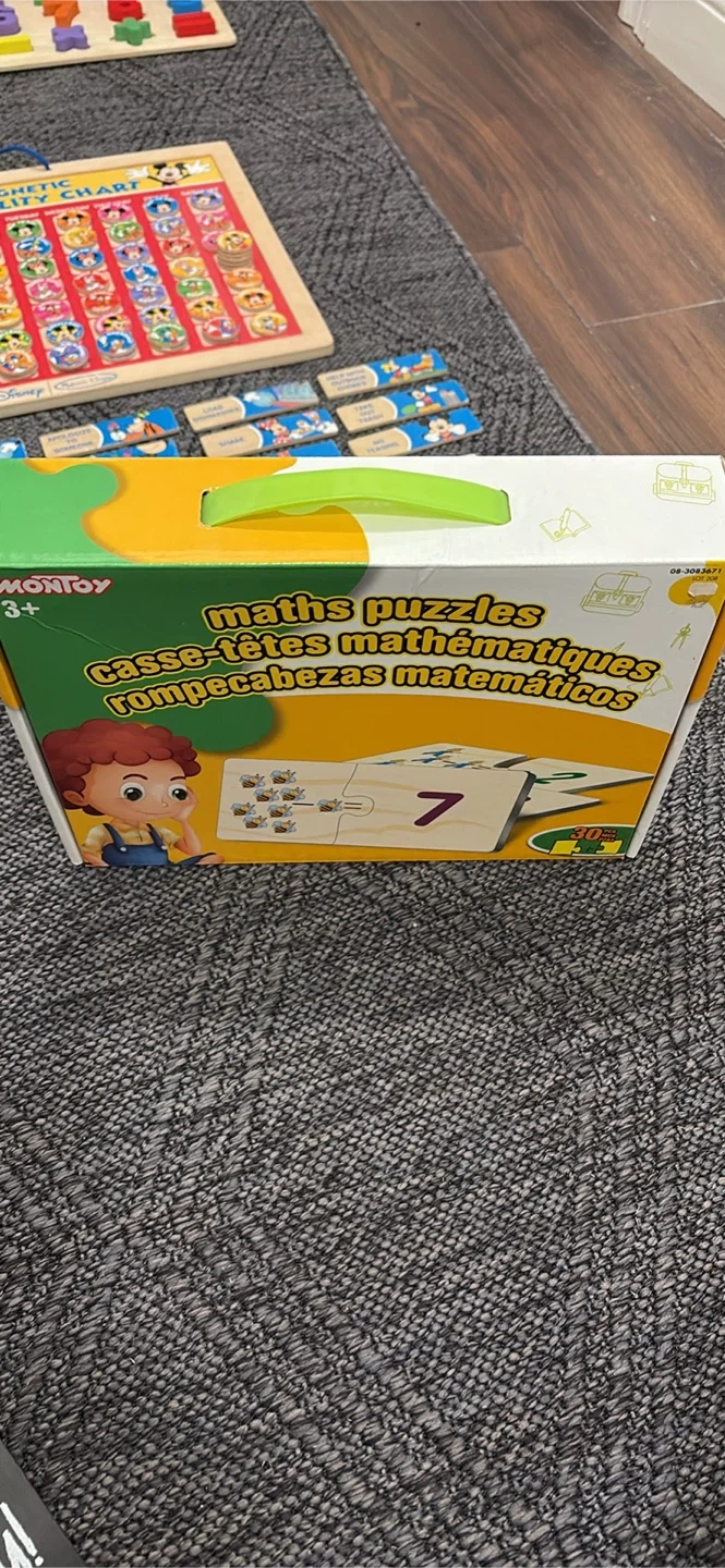 77Selling a Montoy Maths Puzzle set for kids aged 3+. Includes puzzles with numbers and math symbols. Also comes with a Disney magnetic responsibility chart with magnetic pieces. TOYS -$5.00 each