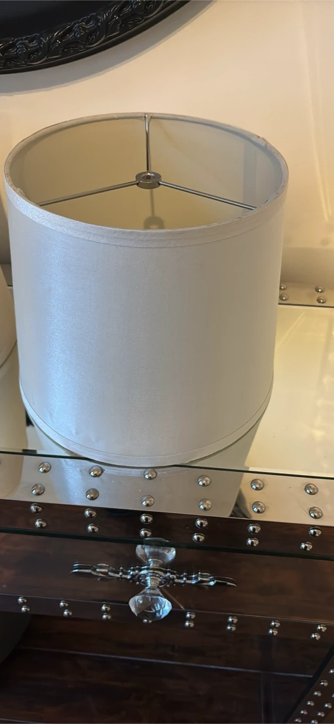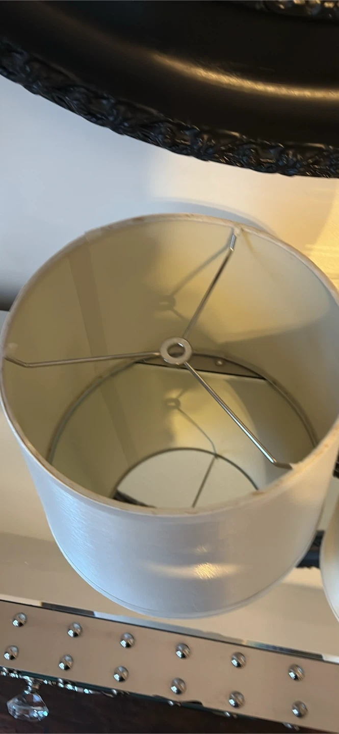 77Selling a set of two lamp shades. They are in good condition and measure approximately 10 inches in height. Perfect for updating your lamps!