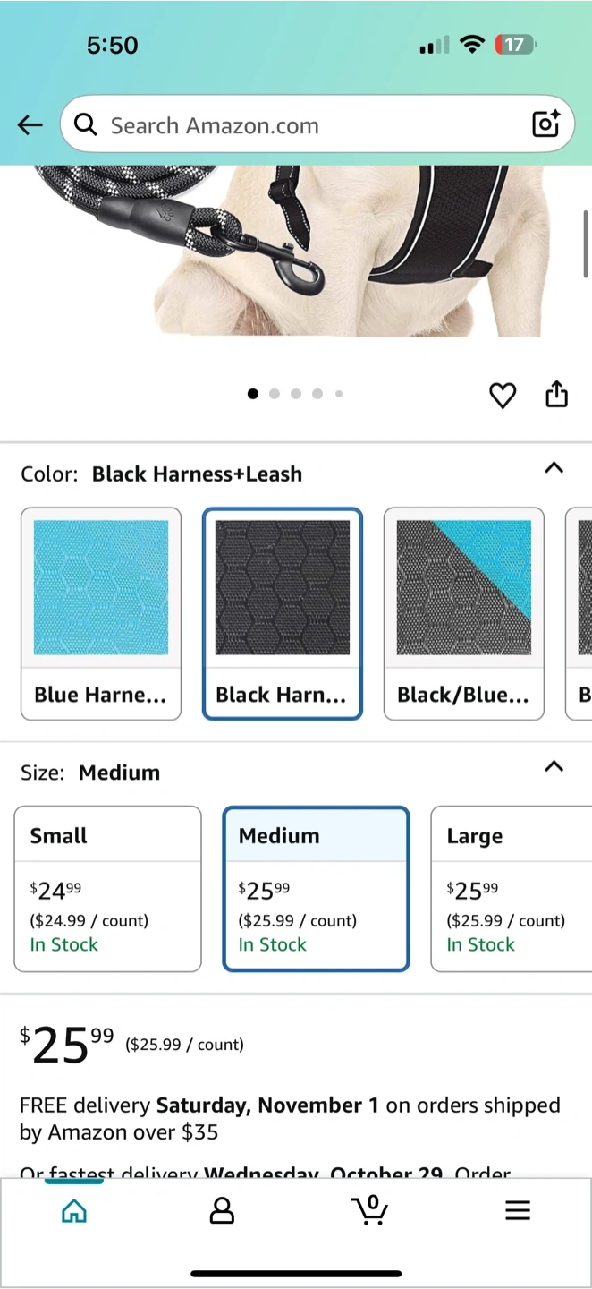 78This is a tobeDRI No Pull Dog Harness with a Free Heavy Duty 5ft Dog Leash. It's black and size medium, fitting necks 14.5"-20.5" and chests 22"-28". It's adjustable and reflective for easy control!