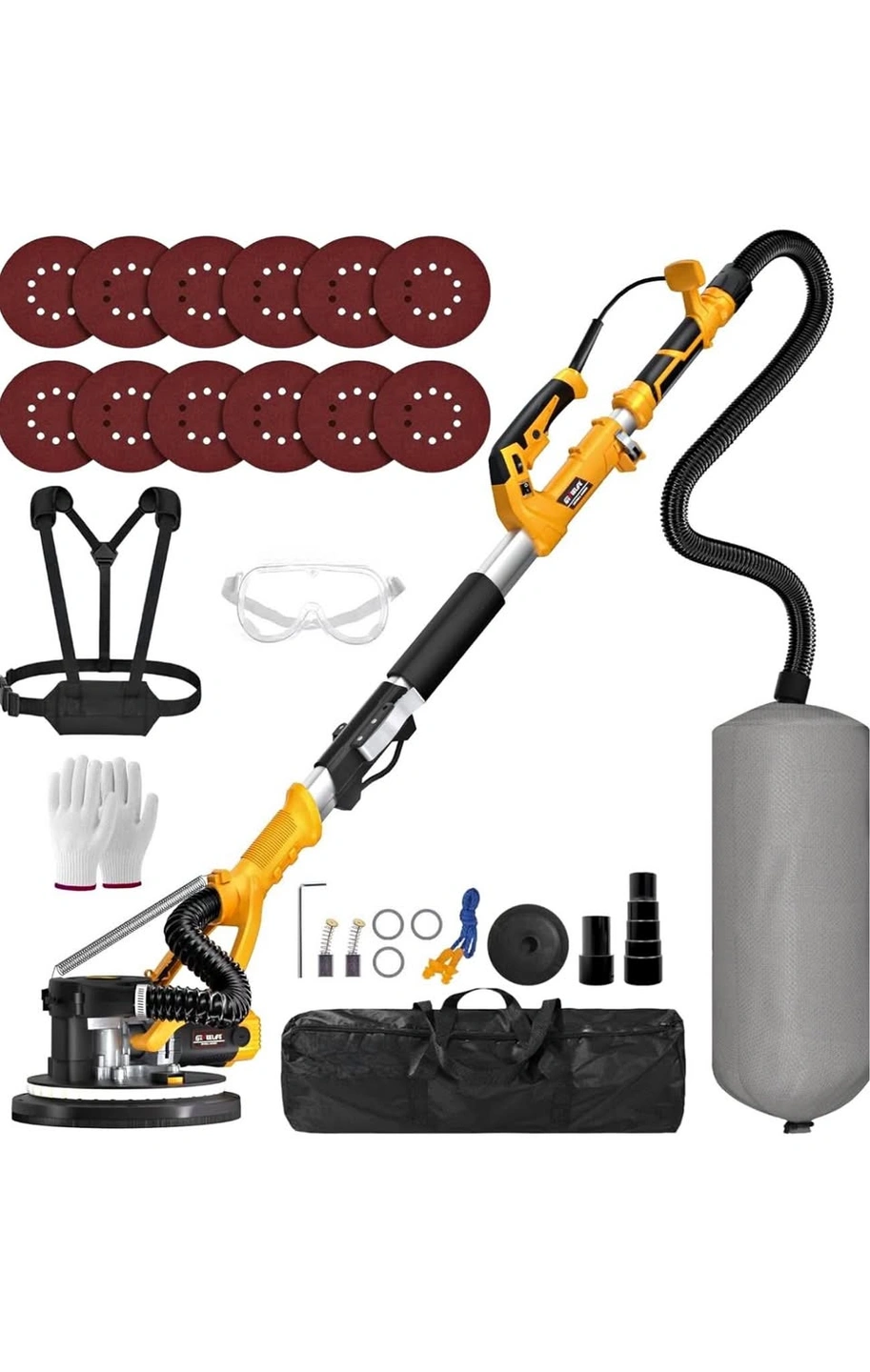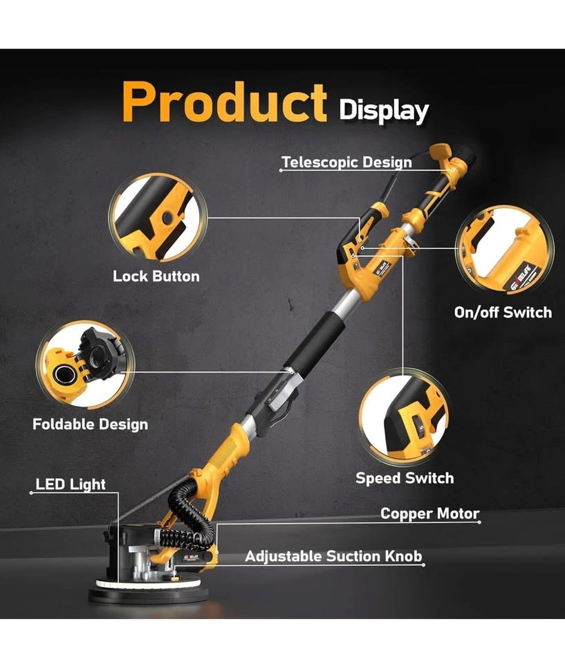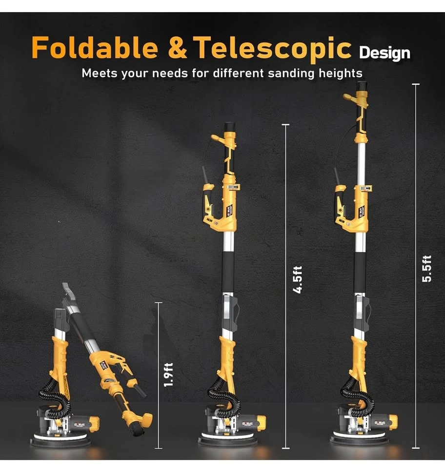 10Drywall Sander, 880W 7.33A Electric Drywall Sander with Vacuum Dust Collector, 5 Variable Speed 1000-2100RPM, LED Light, Foldable & Extendable Handle, 12 Sanding Discs