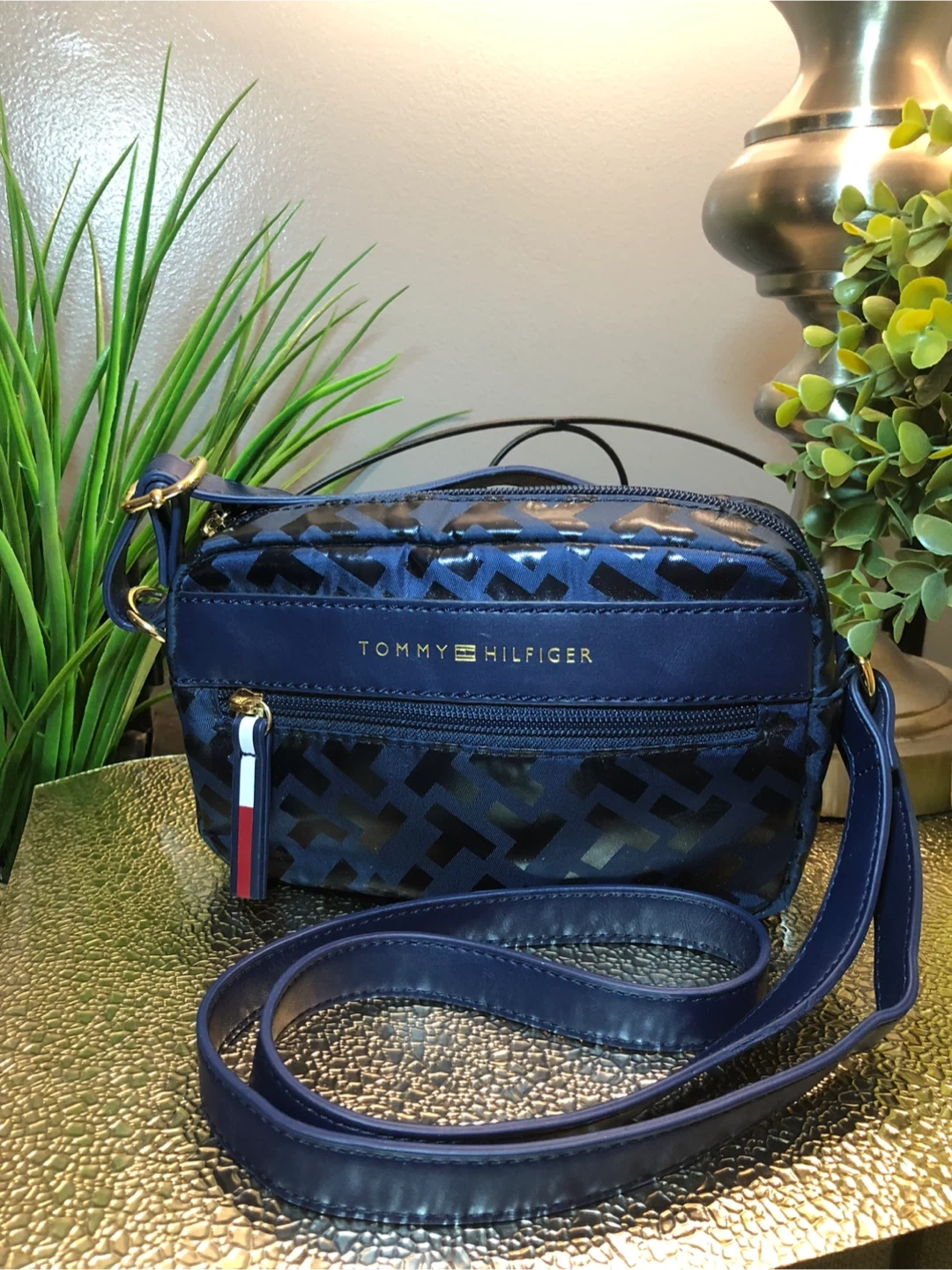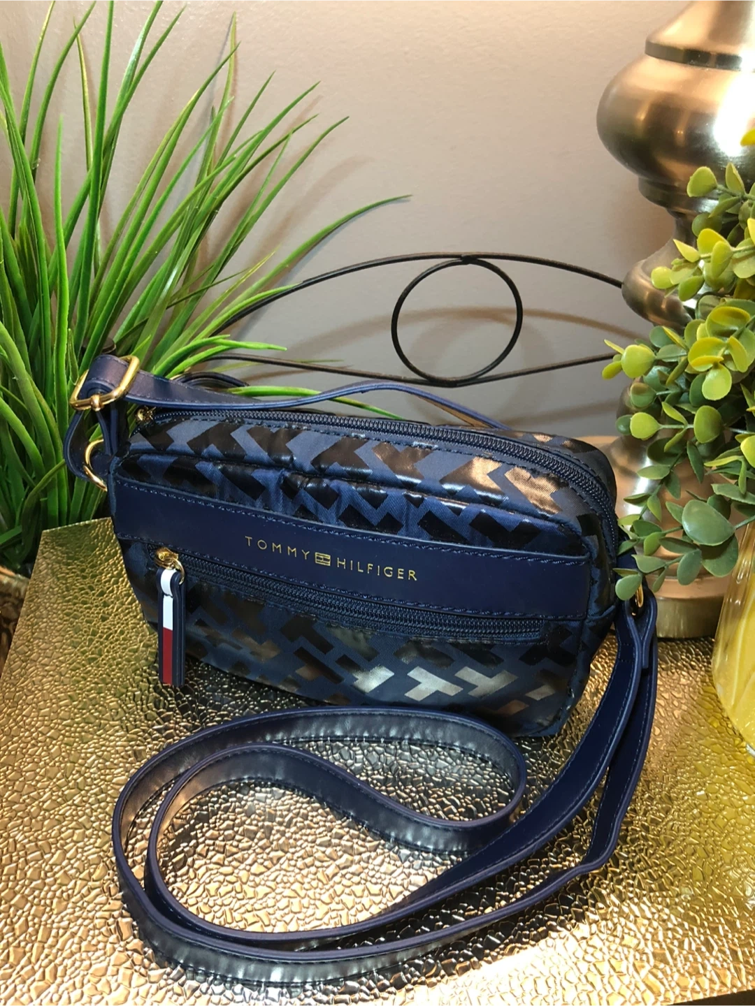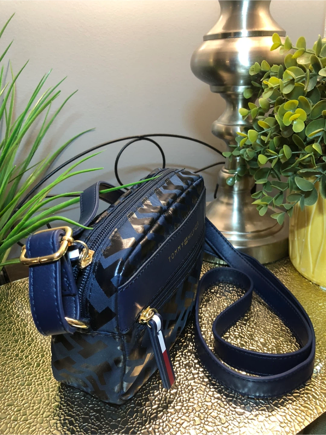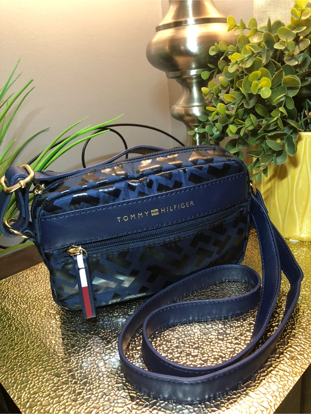 15Tommy Hilfiger crossbody bag in navy blue! It's in great condition and ready for a new home. The bag features a stylish pattern and a convenient size for everyday use