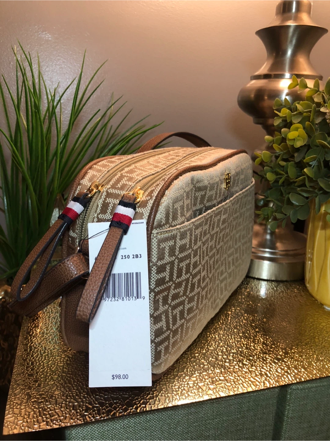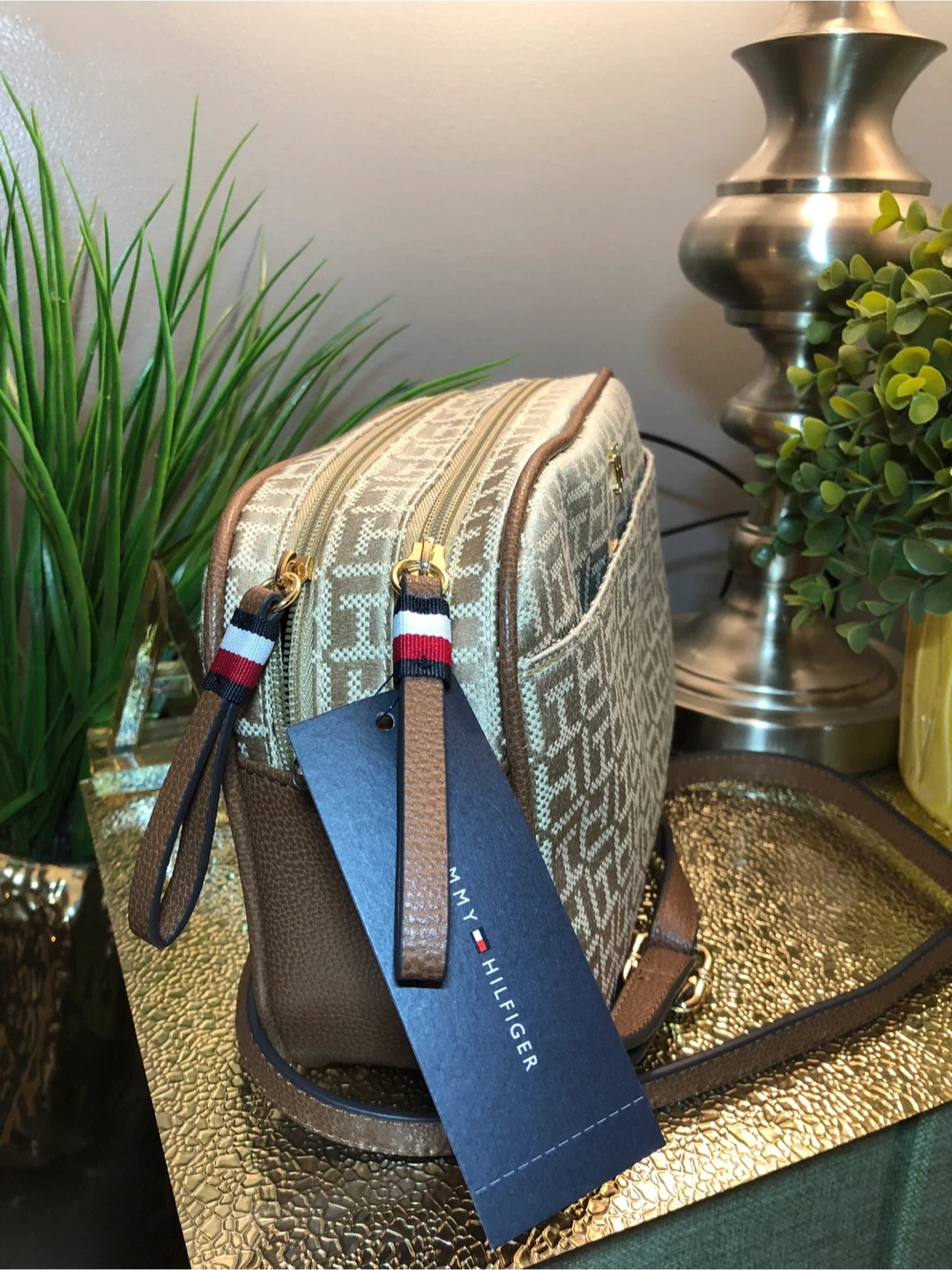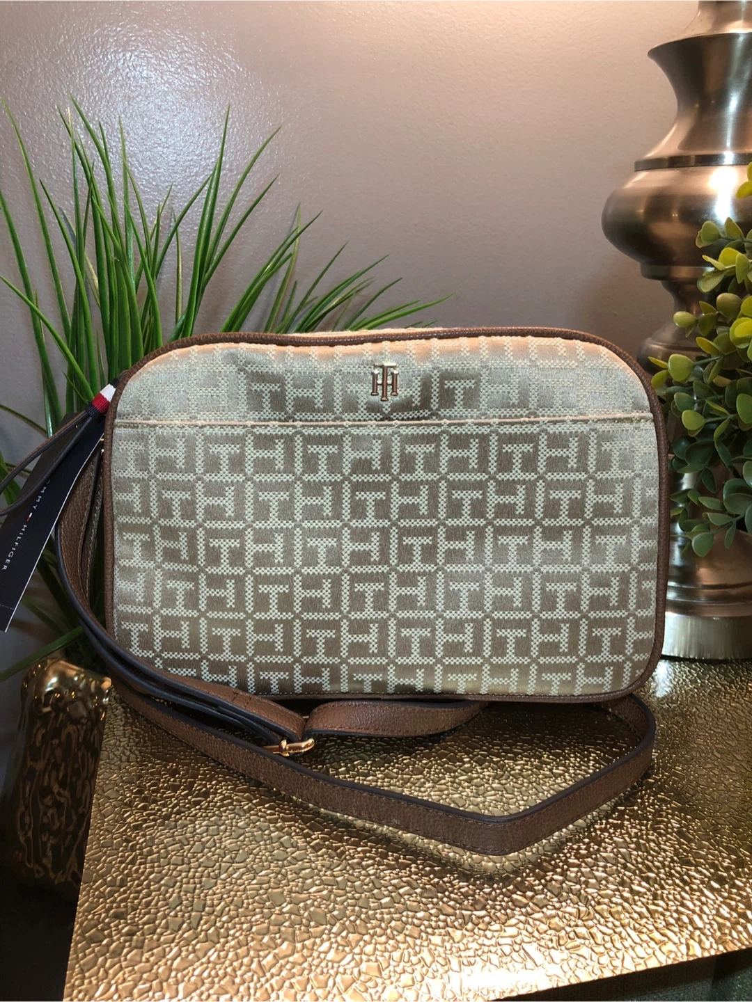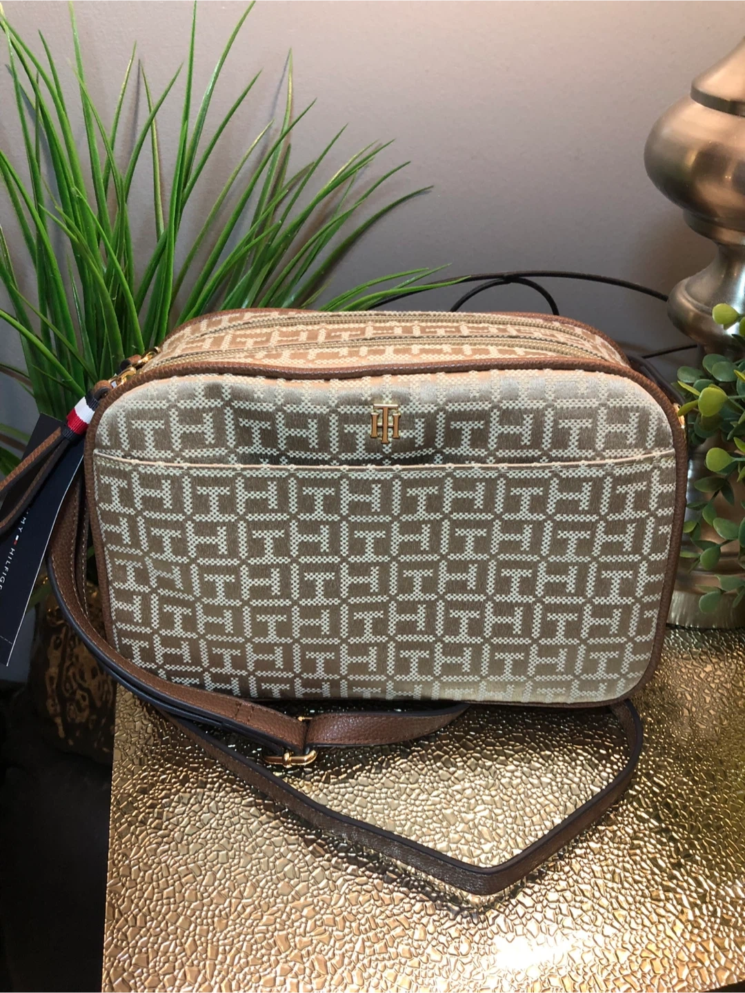15Tommy Hilfiger crossbody bag in a brown patterned design! It's in great condition and ready for a new home. Originally bought for $98.00
