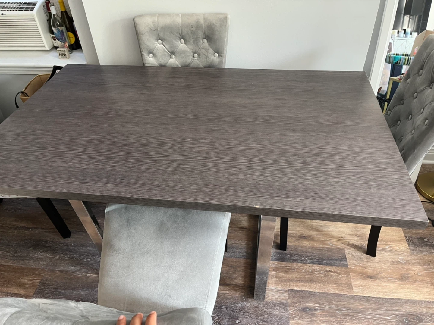 Buy & SellDining TableDining Table$170Selling a dining table. The table features a sleek, modern design with a dark wood-grain top and silver metal legs. The chairs are not included. This would be a great addition to any dining room or kitchen spaceConditionLike new5 chats·5 favorites·437 viewsSELLERBeeLower West Side100 reviewsWHERE TO MEETUhaul pilsen
