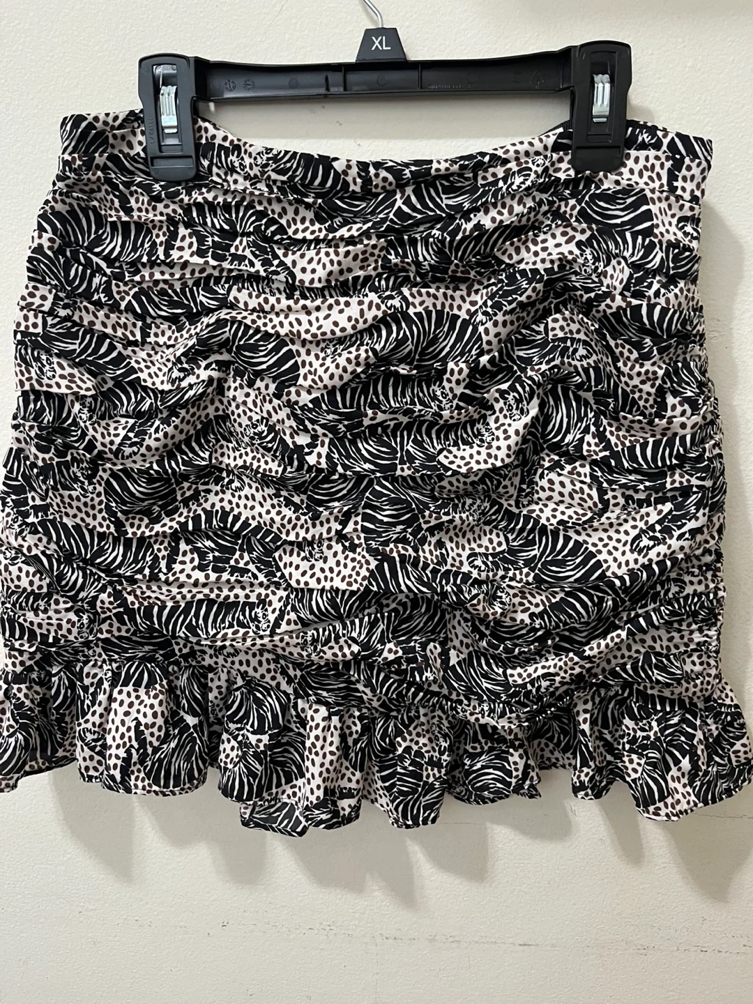 60This is a Zara skirt in size M. It has a black and white leaf pattern with brown dots. The skirt is in good condition and ready for a new home!