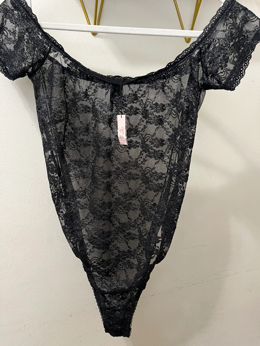 60Selling a Victoria's Secret black lace bodysuit. It's in great condition and features a delicate lace pattern. Perfect for a night out or a special occasion!