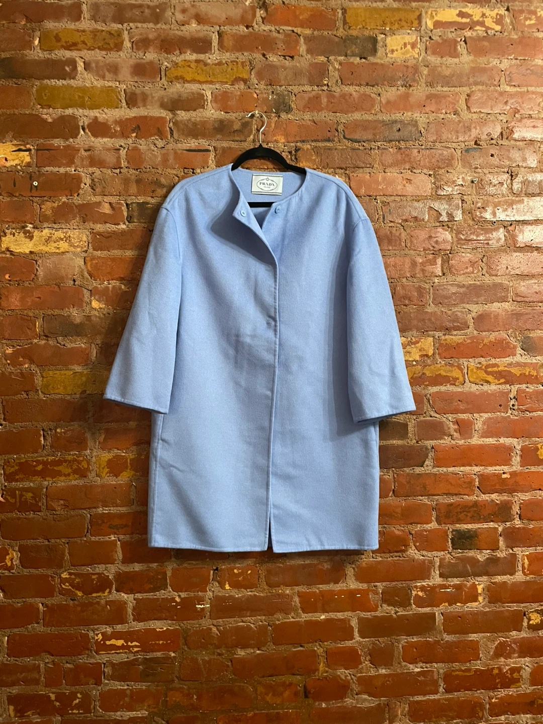 82Selling a stylish Prada coat in a lovely light blue color. It's in NEW never worn great condition and ready for a new home. This coat is perfect for adding a touch of elegance to any outfit