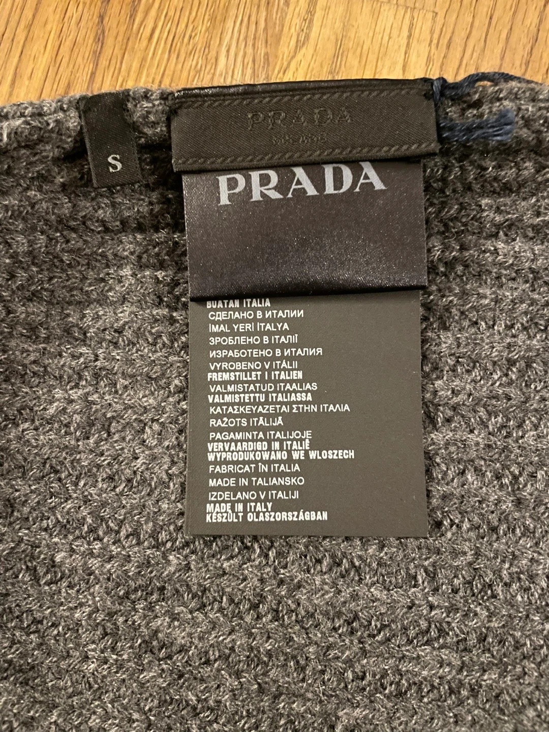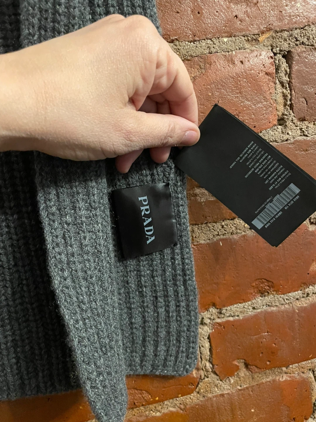 82Selling a Prada knit beanie and scarf set in Heather gray 4 ply Italian cashmere. Gender neutral, one size fits all and made in Italy. The material is so soft and cozy warm !