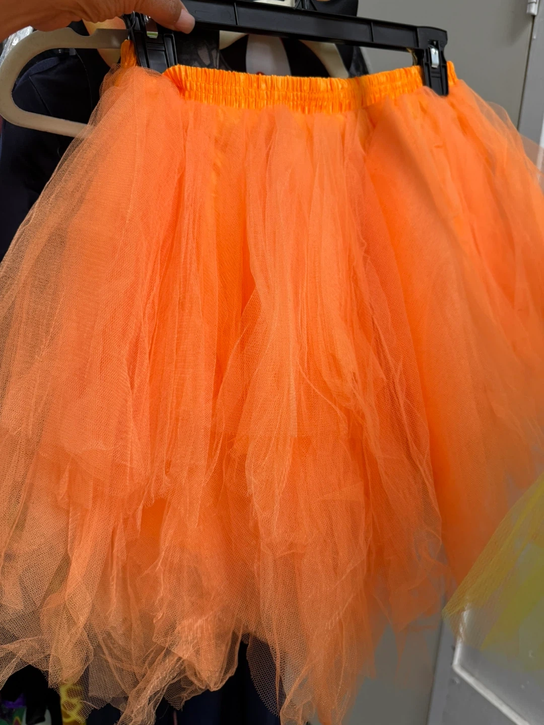 10I'm selling an orange tulle skirt. It's new and perfect for dress-up or dance! The skirt is a vibrant orange color and made of soft tulle material