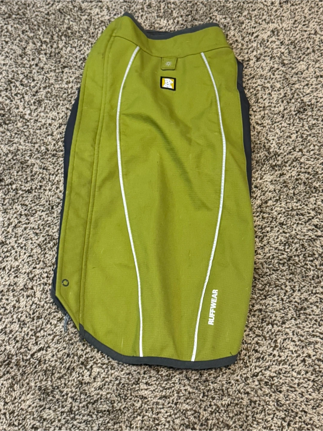 77Selling a Ruffwear dog jacket! It's green and gray. Great for keeping your furry friend warm and dry on walks. Please note, the size is unknown.