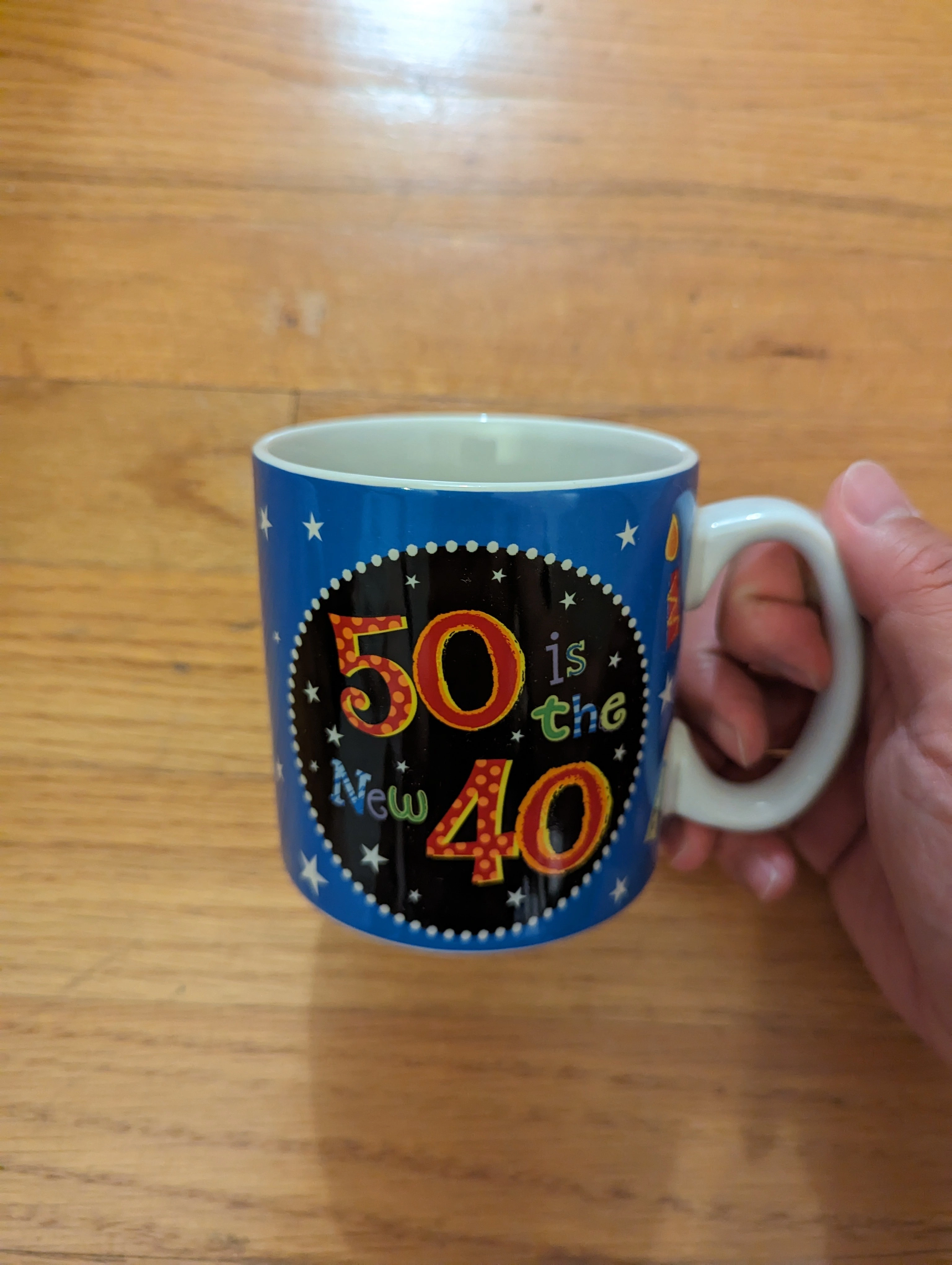 Buy & Sell"50 is the new 40" ceramic mug; BRAND NEW in BOX"50 is the new 40" ceramic mug; BRAND NEW in BOX$5A great 50th Birthday Present; a nice laugh. Mug is brand new, in original box. The box has some wear, and slight folds/tears on it though.ConditionNew0 chats·0 favorites·0 viewsSELLEREddie PFairfield150 reviewsWHERE TO MEETCheck Location