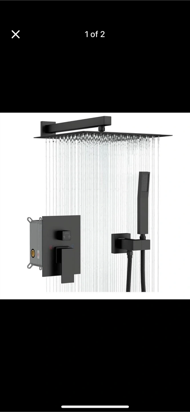36Selling a matte black shower system. It includes the rain shower head, handheld shower, and water control valve. Great for a bathroom remodel!