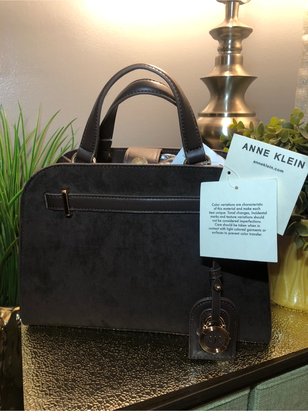 37This Anne Klein handbag is brand new with tags! It's a beautiful espresso color and features a belted satchel design. Originally bought for $85. Perfect for everyday use or a special occasion