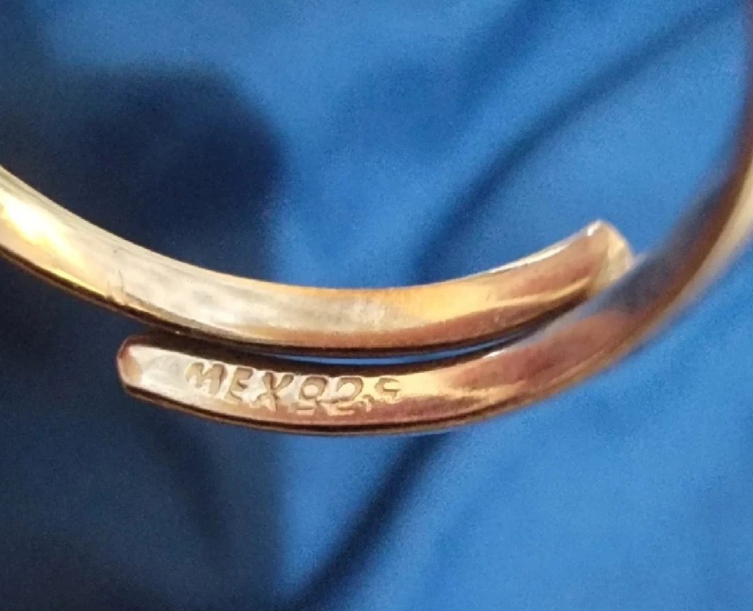 Selling a lovely vintage silver ring. The ring is silver in color and has blue and clear stones. Also including a bracelet.