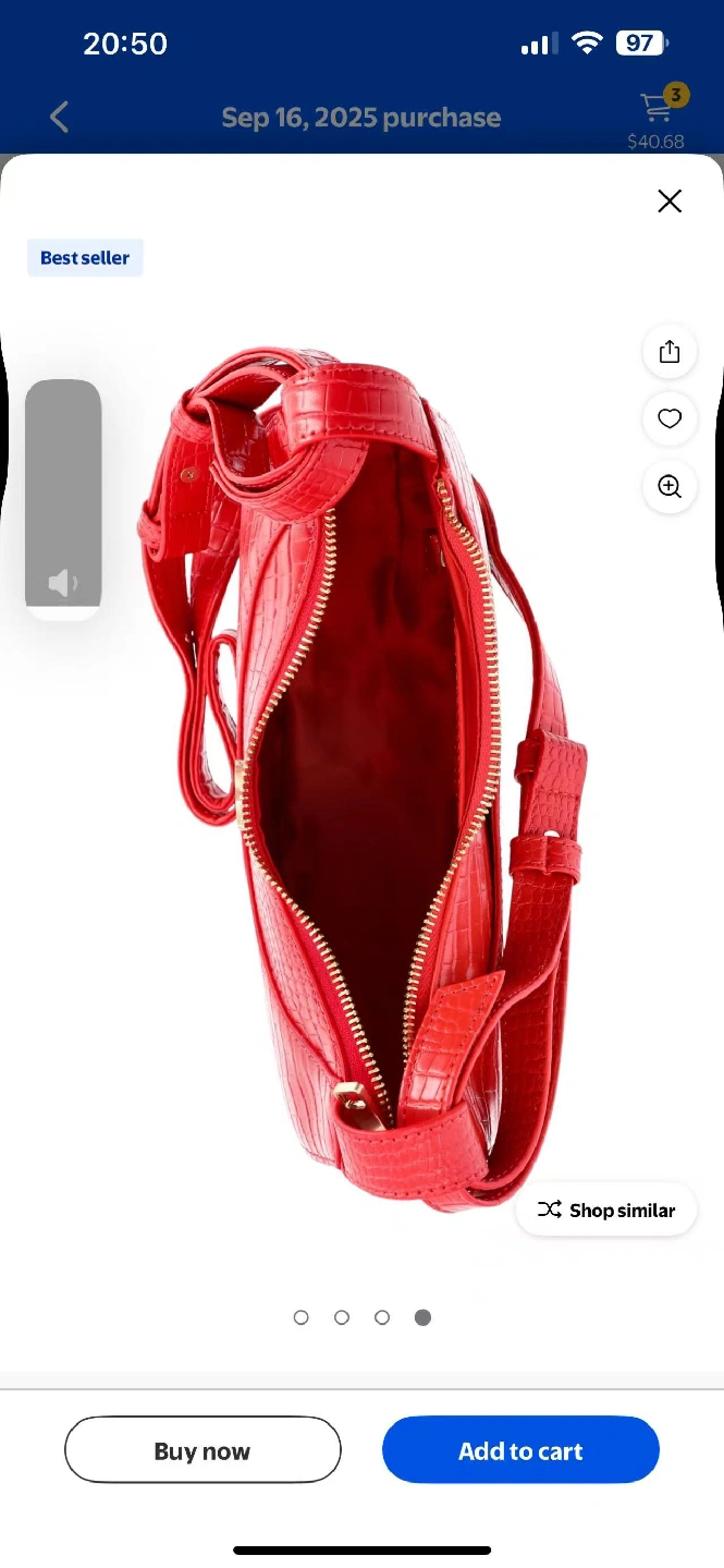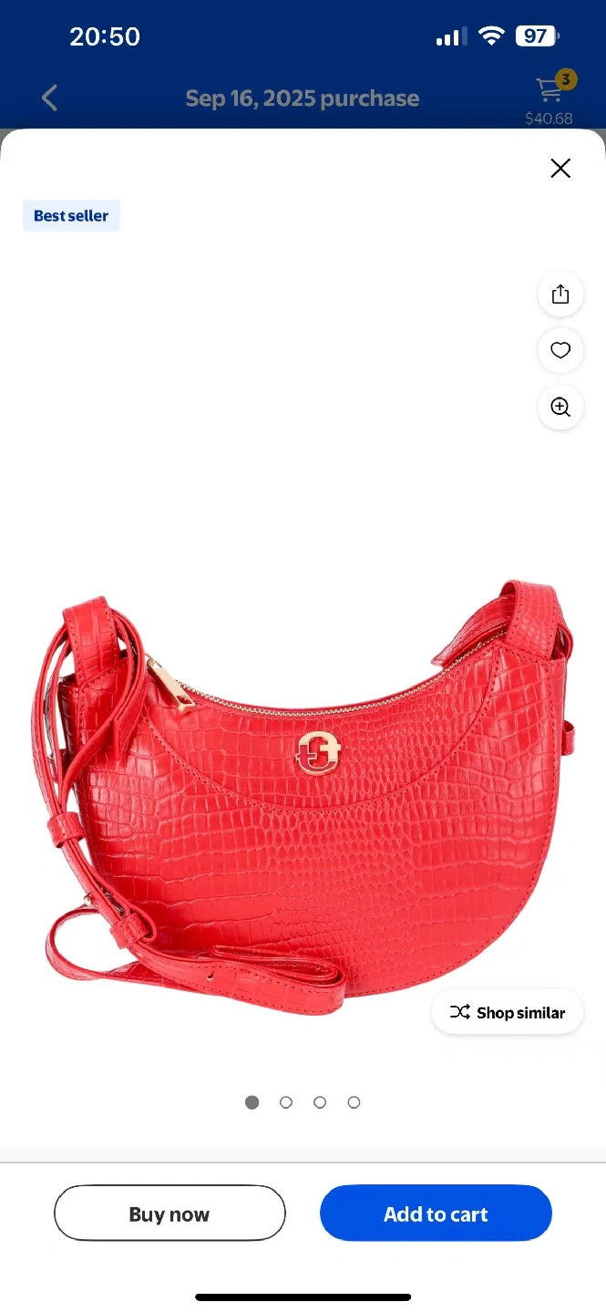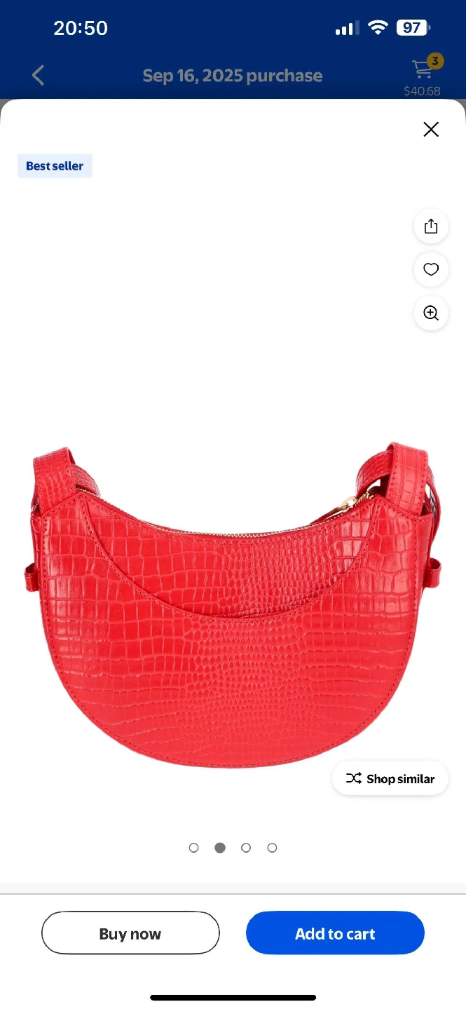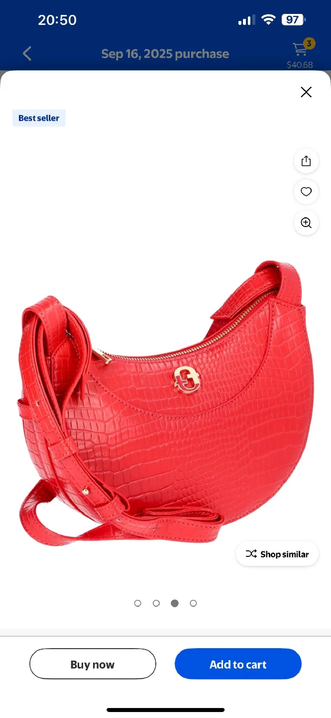 5This is a stylish red crossbody bag with a croc-embossed texture. It features a zipper closure and a unique half-moon shape. Perfect for adding a pop of color to any outfit!
