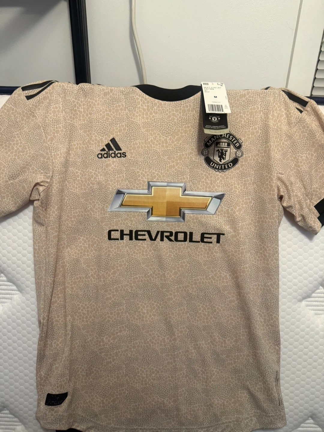 Selling a brand new with tags Adidas Manchester United 2020/21 away jersey in size medium. It features the Chevrolet logo and the iconic Manchester United crest. A great addition for any fan!