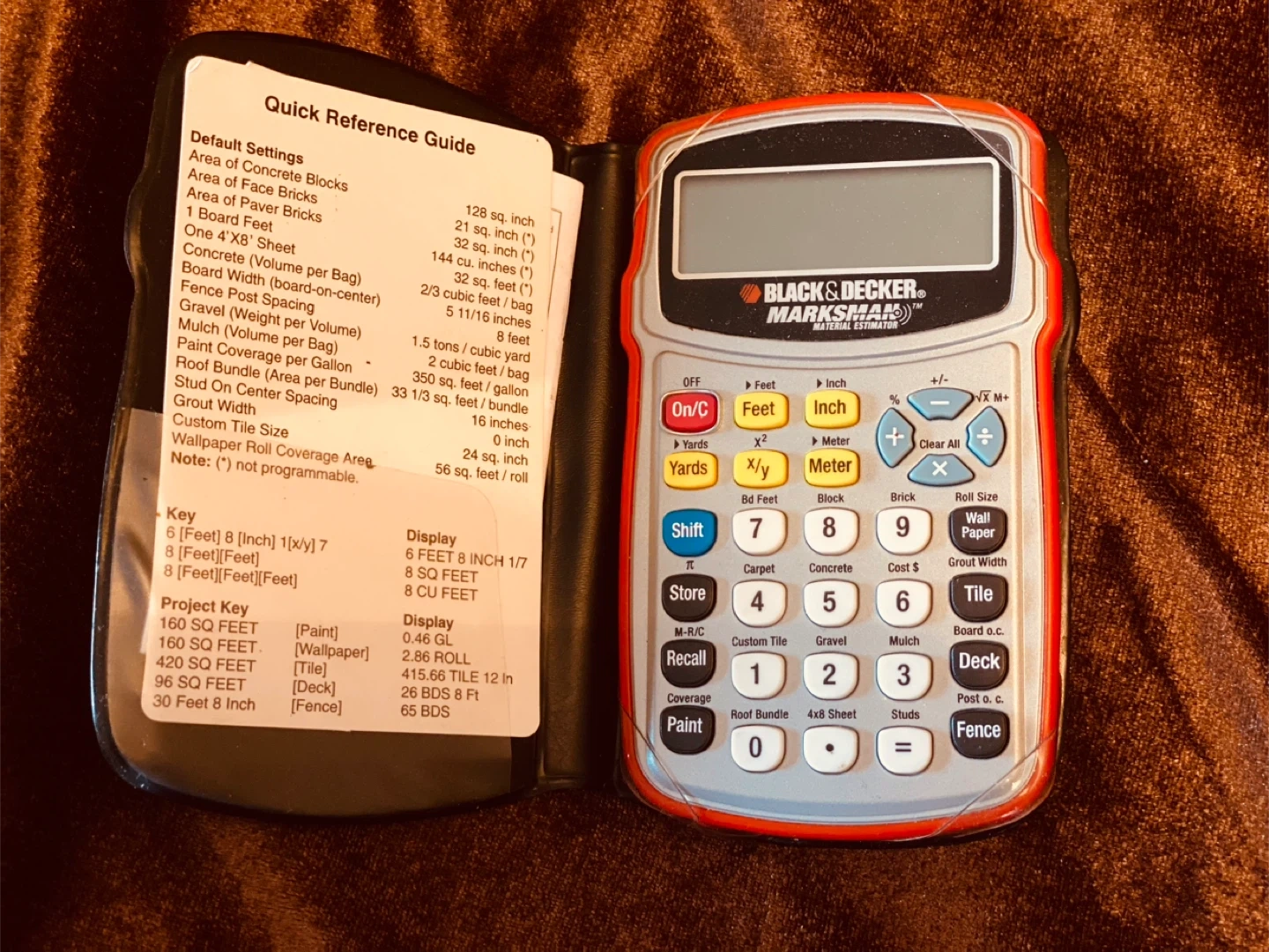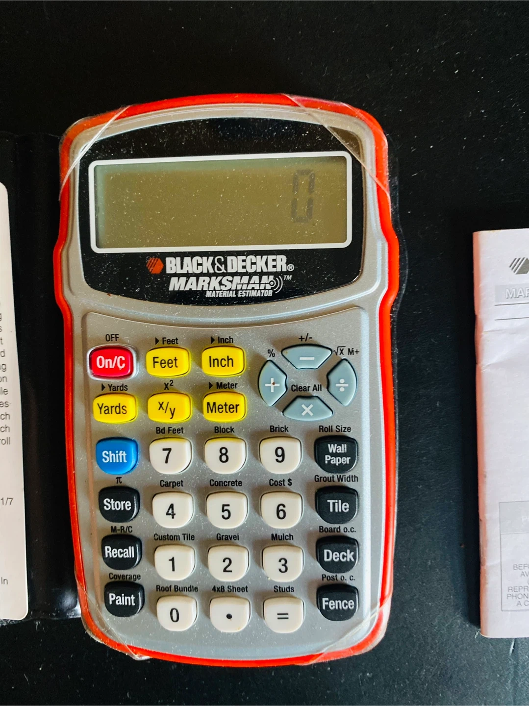 51Selling a Black & Decker Material Estimator calculator. It's in good condition and ready to help with your projects! This handy tool can assist with calculating areas for concrete blocks, paver bricks, board feet, and much more. It also helps with paint coverage, gravel volume, and other essential calculations for home improvement or construction projects