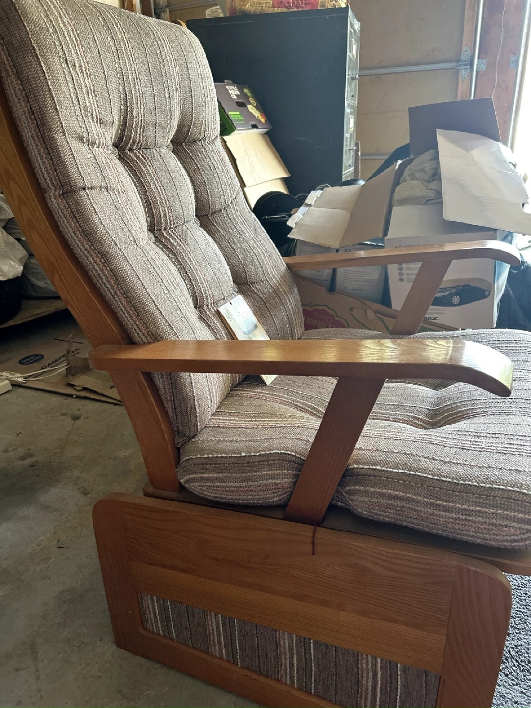 10Here's a Shermag glider rocker chair that would be perfect for a nursery or living room! It has a comfortable, cushioned seat and back, and the gliding motion is super relaxing. The chair is in good condition and ready for a new home