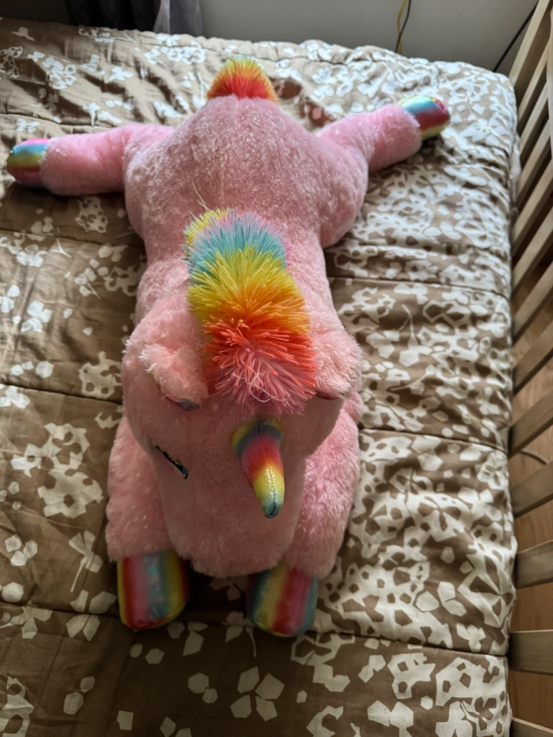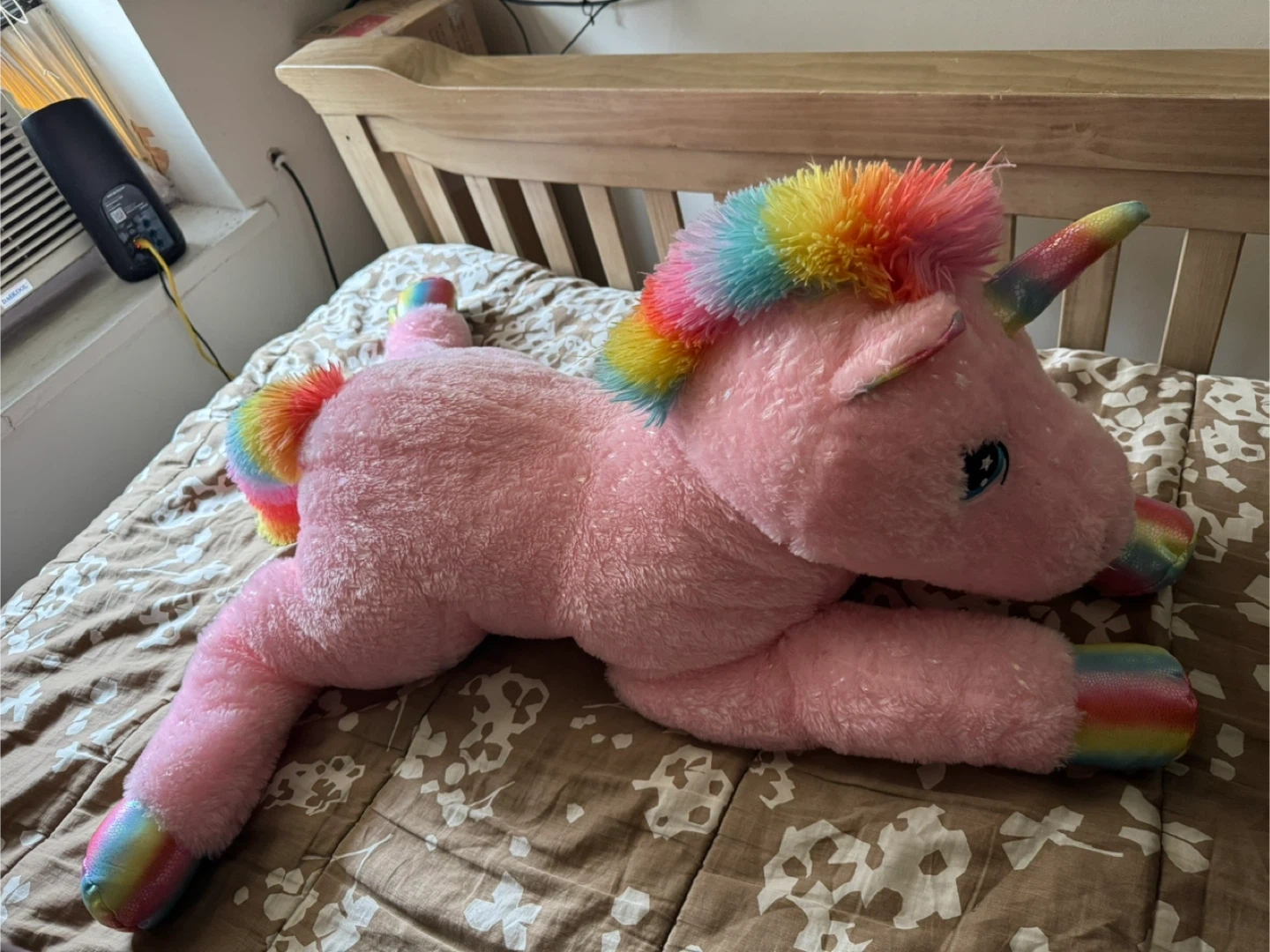 Selling a cute pink unicorn plush! It has a rainbow mane and tail, and is in great condition. Perfect for kids or anyone who loves unicorns