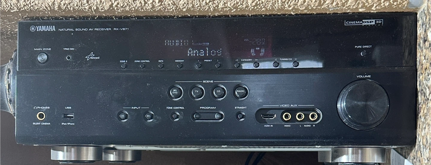 Buy & SellYamaha RX-V671 Natural Sound AV ReceiverYamaha RX-V671 Natural Sound AV Receiver$180Selling a Yamaha RX-V671 Natural Sound AV Receiver. It has connections for phones, USB, and HDMI. Also has connections for DVD, TV, CD, and Radio.ConditionGoodBrandYamahaWHERE TO MEETLiberty AveView MapSELLERverifiedNatasiaJamaica600 reviews0 chats·0 favorites·146 viewsSEND CHAT TO SELLERHi Natasia! I’m interested in your listing.Hi Natasia! I’m interested in your listing.Get the Karrot app to chatSign In to chat