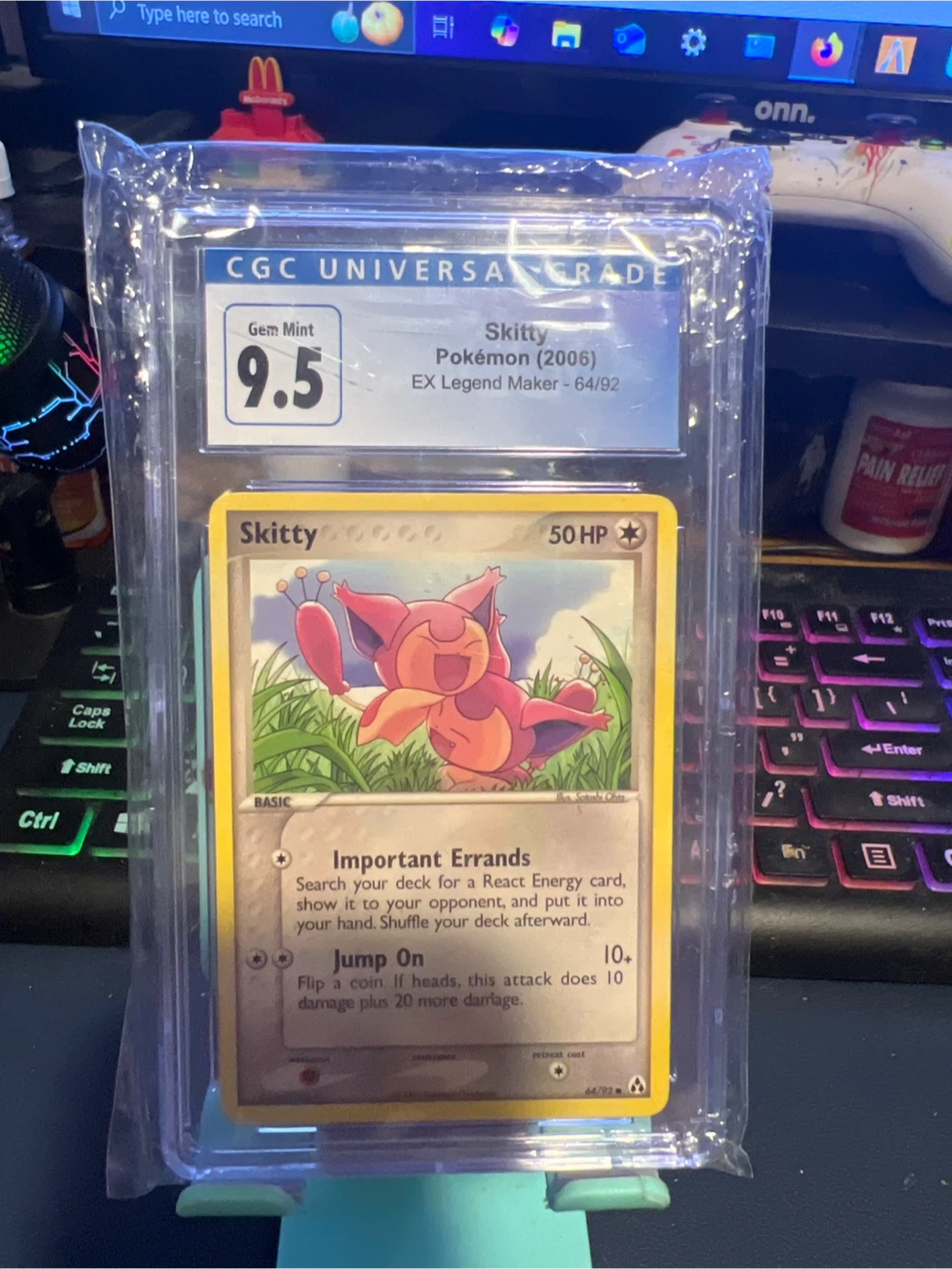 75Selling a Skitty Pokemon card from 2006, graded by CGC as a 9.5 Gem Mint! It's from the EX Legend Maker series, card number 64/92. A great addition to any Pokemon card collection!