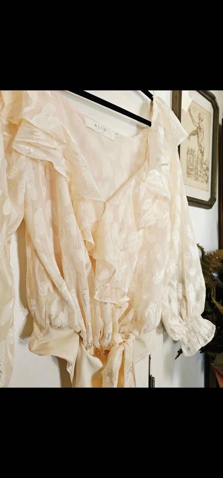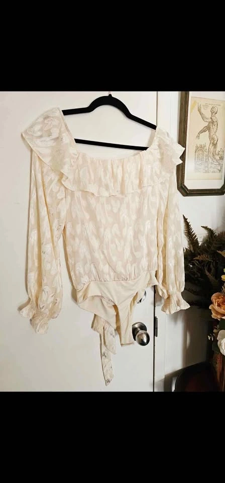 Size S ASTR Cream Ruffle Persephone Bodysuit Top