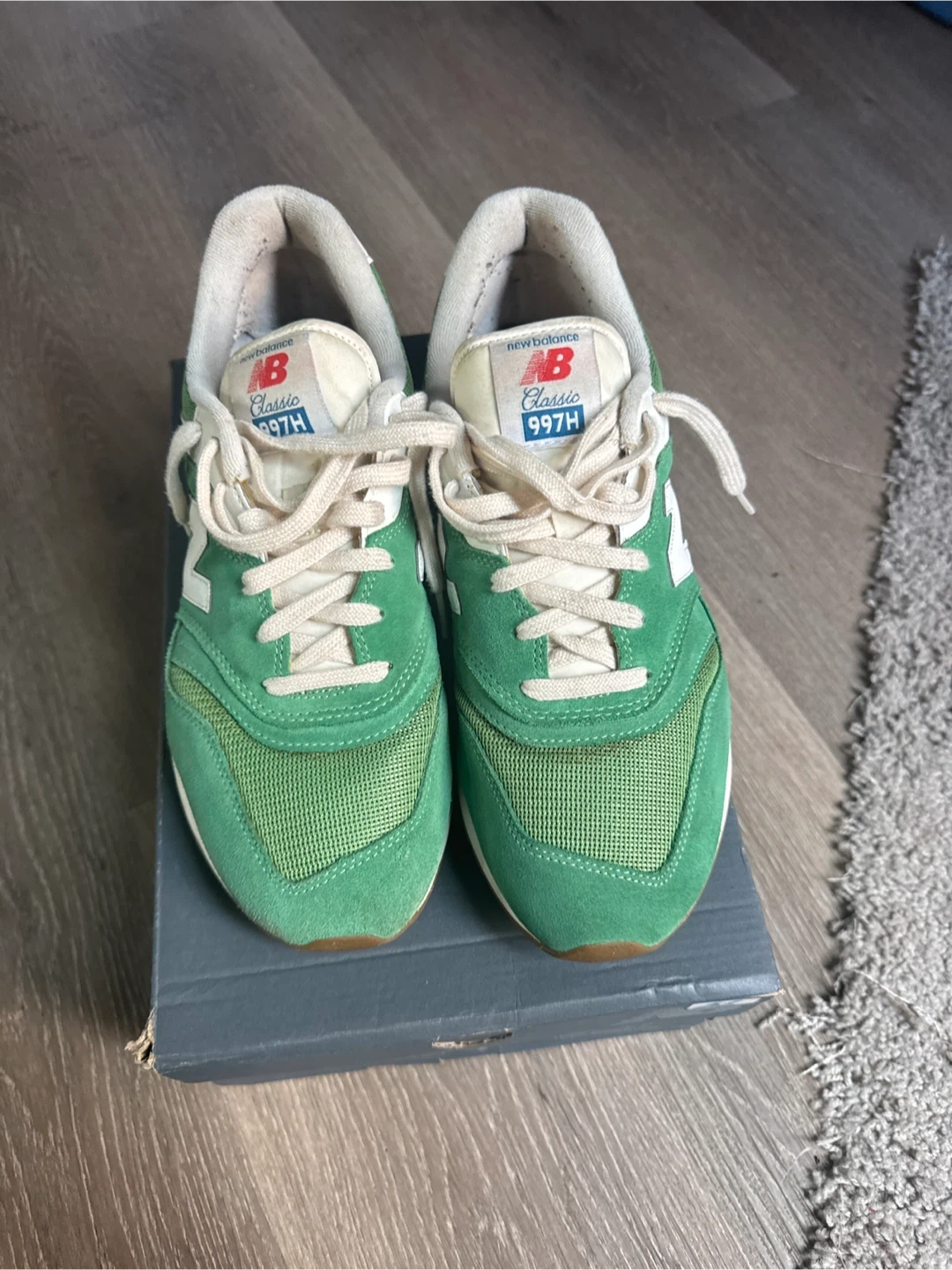 Selling a pair of New Balance 997H sneakers in green! They're in great condition and come with the original box. These classic sneakers are super comfortable and stylish, perfect for everyday wear