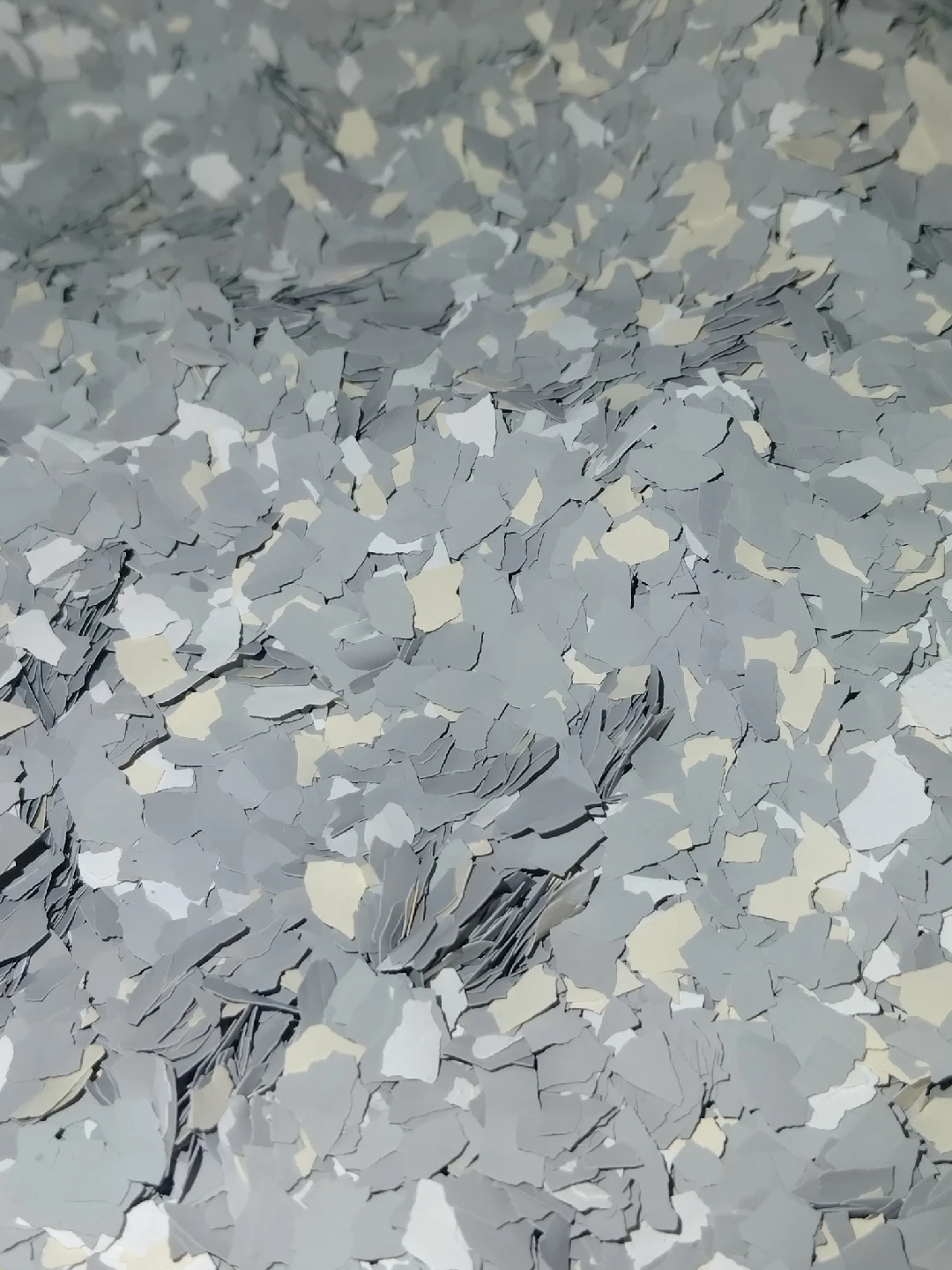 65I have about 90lbs give or take between 3 boxs. Selling vinyl color chips, identified as CS-25154-2Mac. They're 1/4" in size and come in a mix of gray, white, and beige tones enough flack to do a small bathroom.