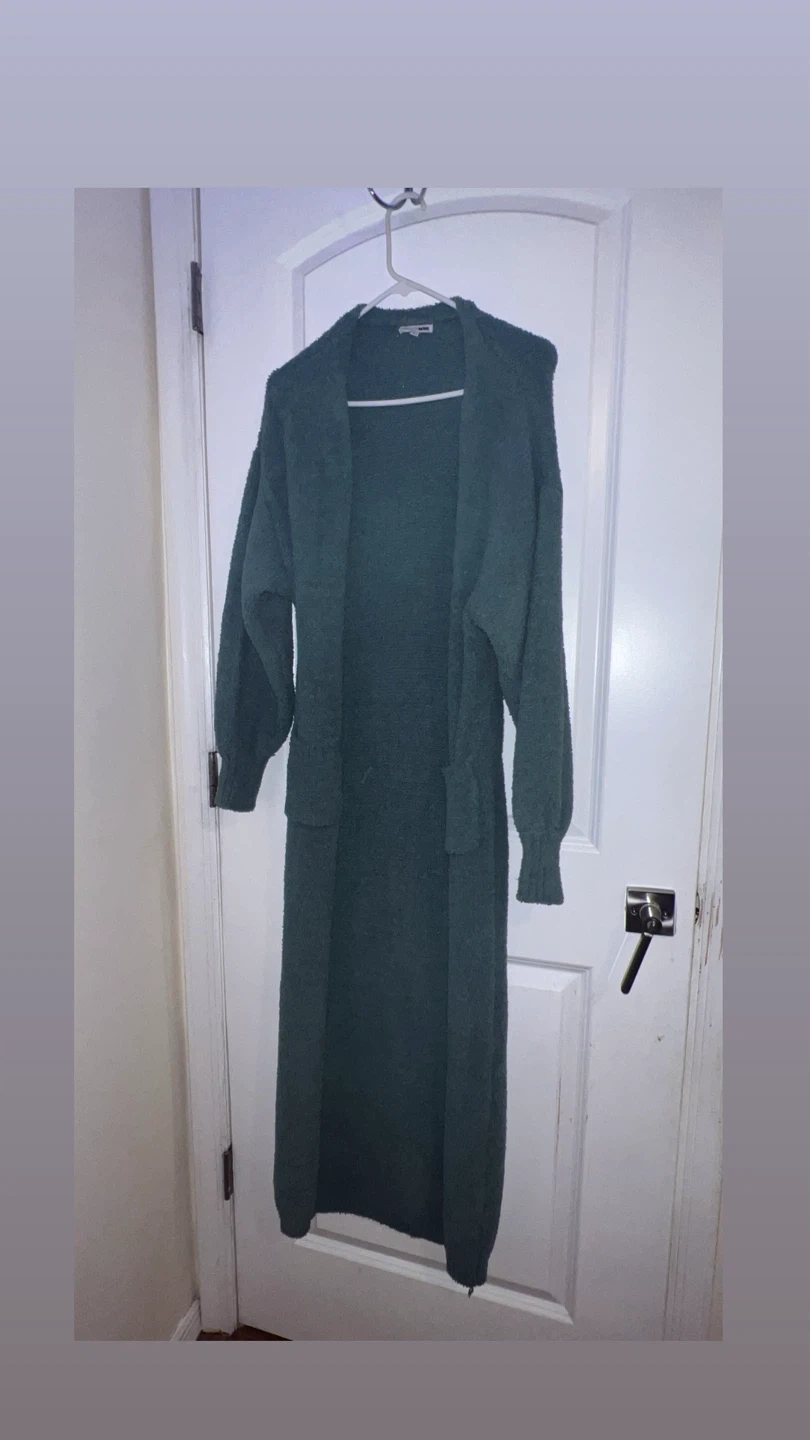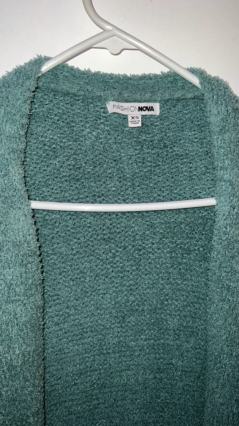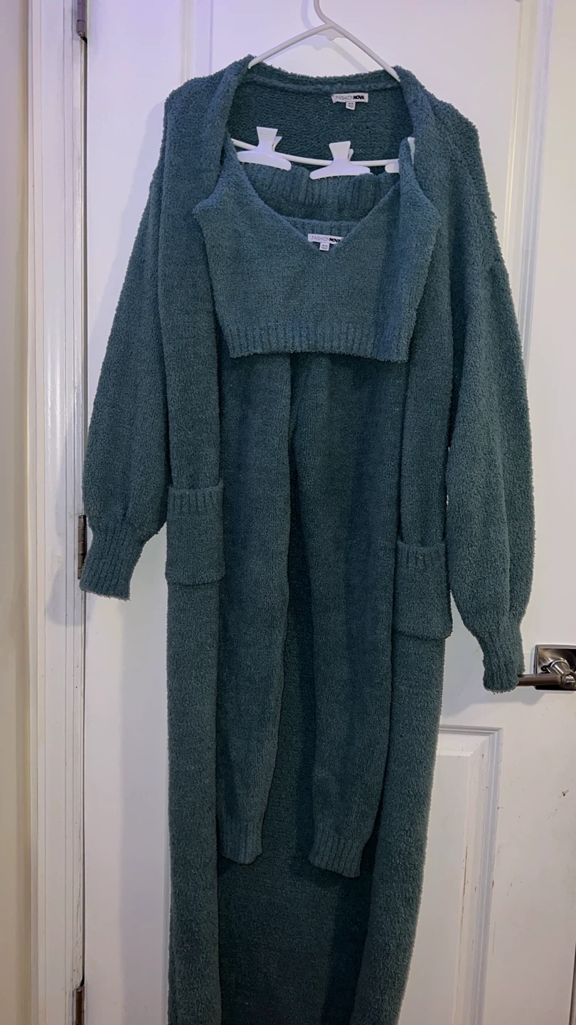 65Selling a Fashion Nova fuzzy 3-piece set in size XS! It includes a long cardigan, a crop top, and pants. The set is a beautiful green color and is made of a soft, fuzzy material. Perfect for lounging or a cozy night out!