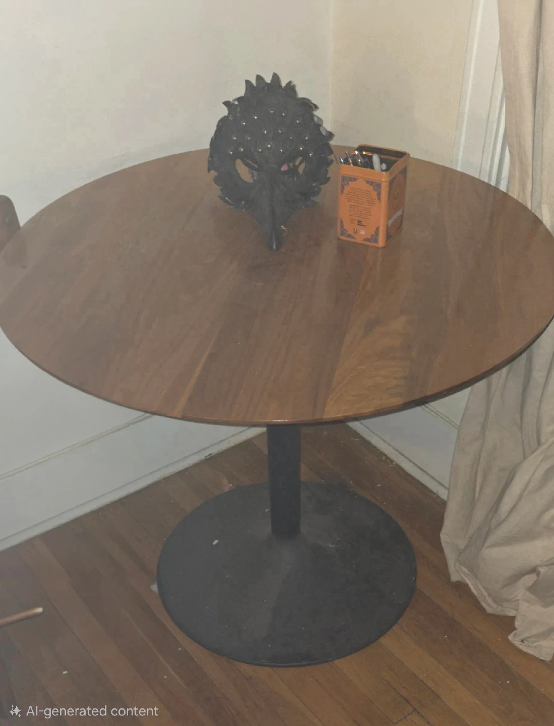 Selling a round wooden dining table. It measures approximately 35 inches in diameter 29inch height. Great for a small dining area or kitchen nook! It has a sturdy base and a smooth wooden top