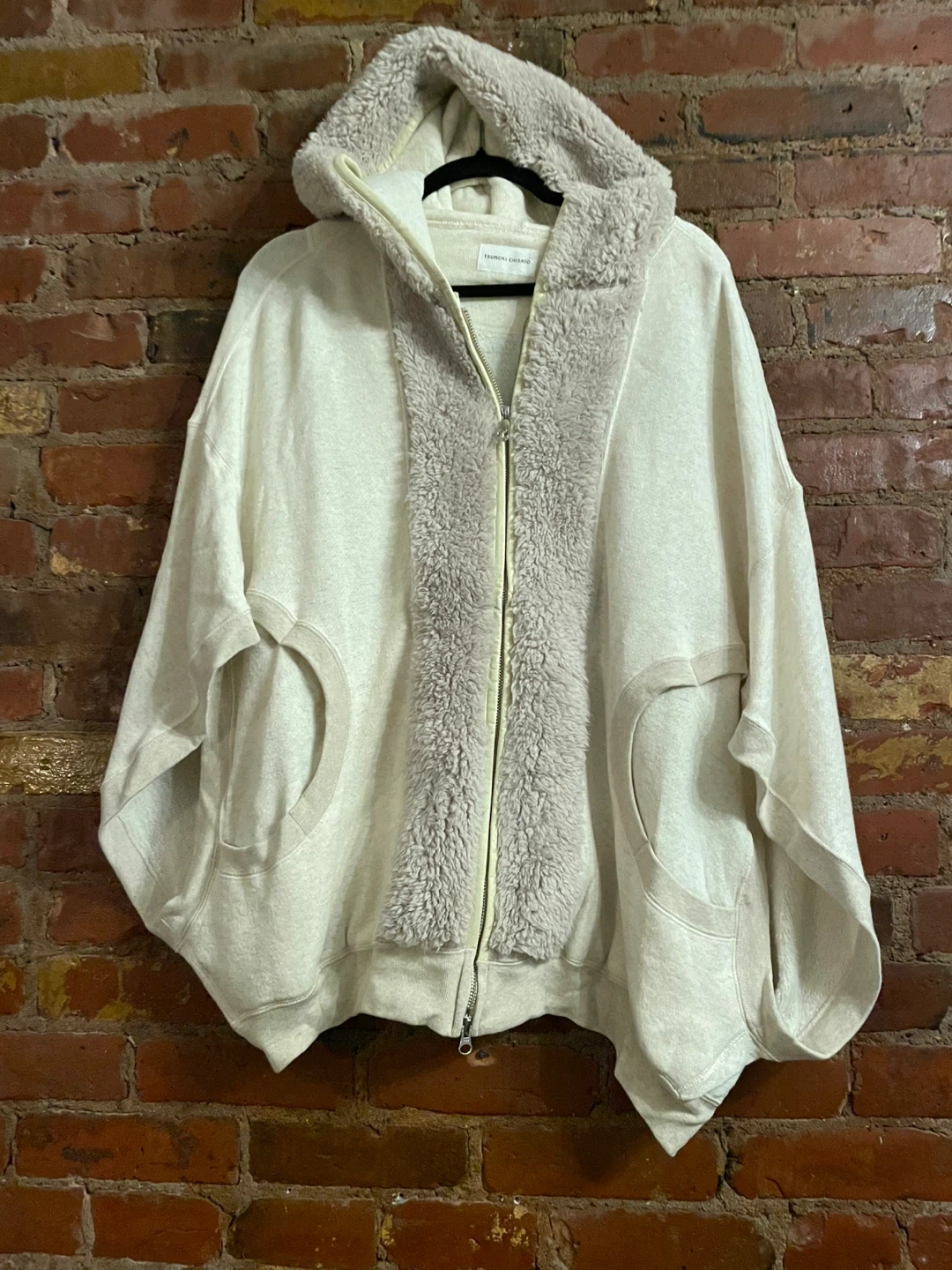 82Selling a Tsumori Chisato hoodie in a cream color! It features a fuzzy trim and a comfortable fit. Perfect for layering or wearing on its own