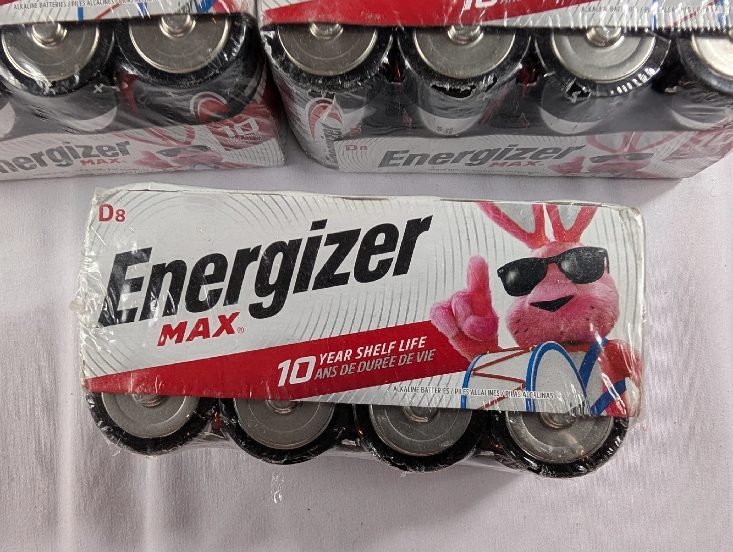 Selling new packs of Energizer MAX D8 batteries. Each pack has a 10-year shelf life, ensuring long-lasting power when you need it