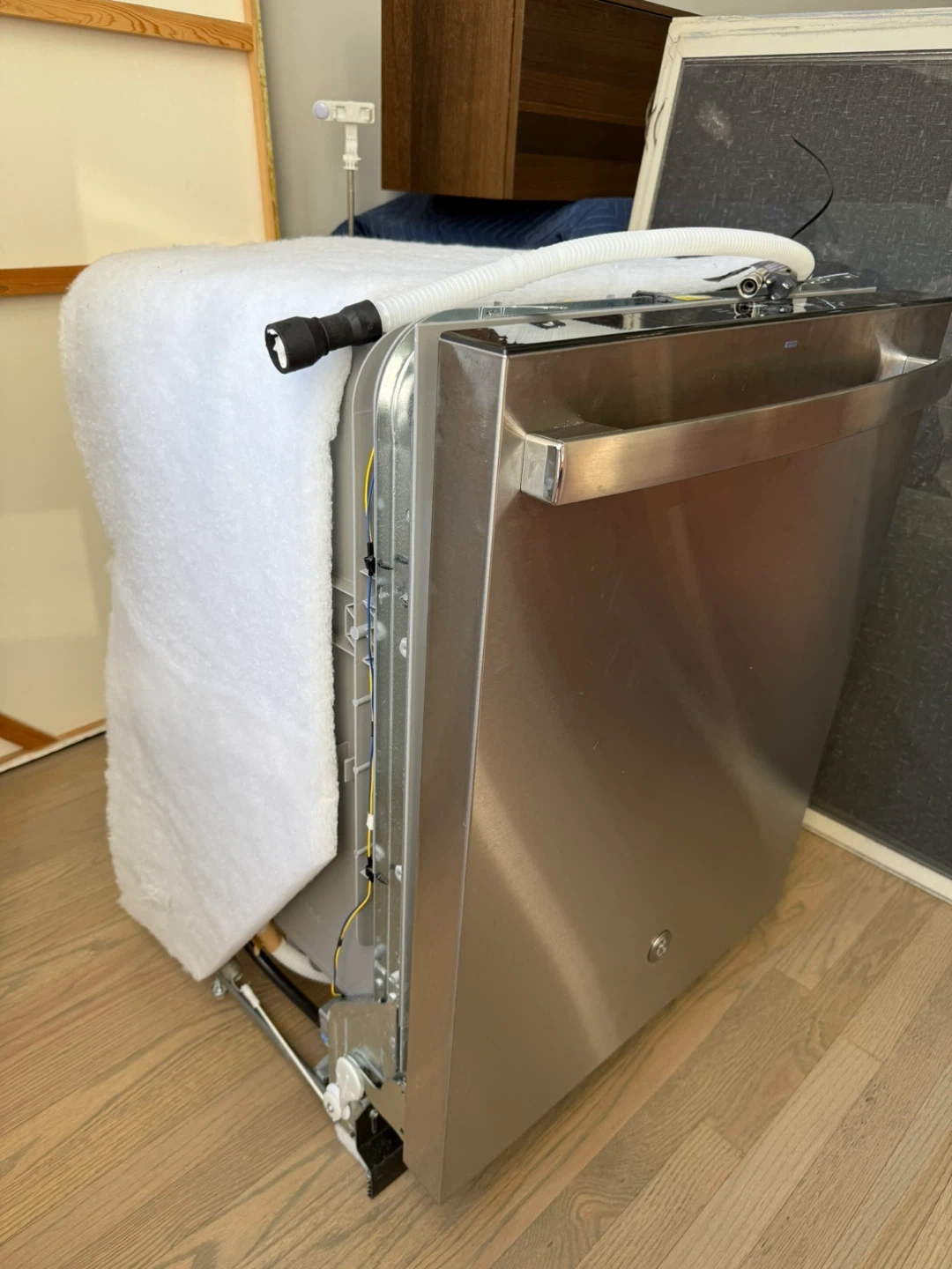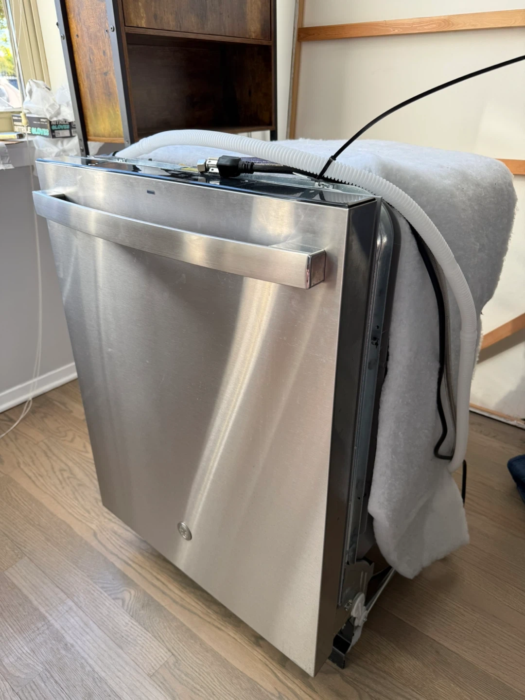 Selling a brand new GE stainless steel dishwasher! It's in great condition and ready to help with your dishwashing needs. Perfect for any kitchen looking for a reliable appliance. It was only used once at a new construction property before it was changed for an upgraded version by the owners.