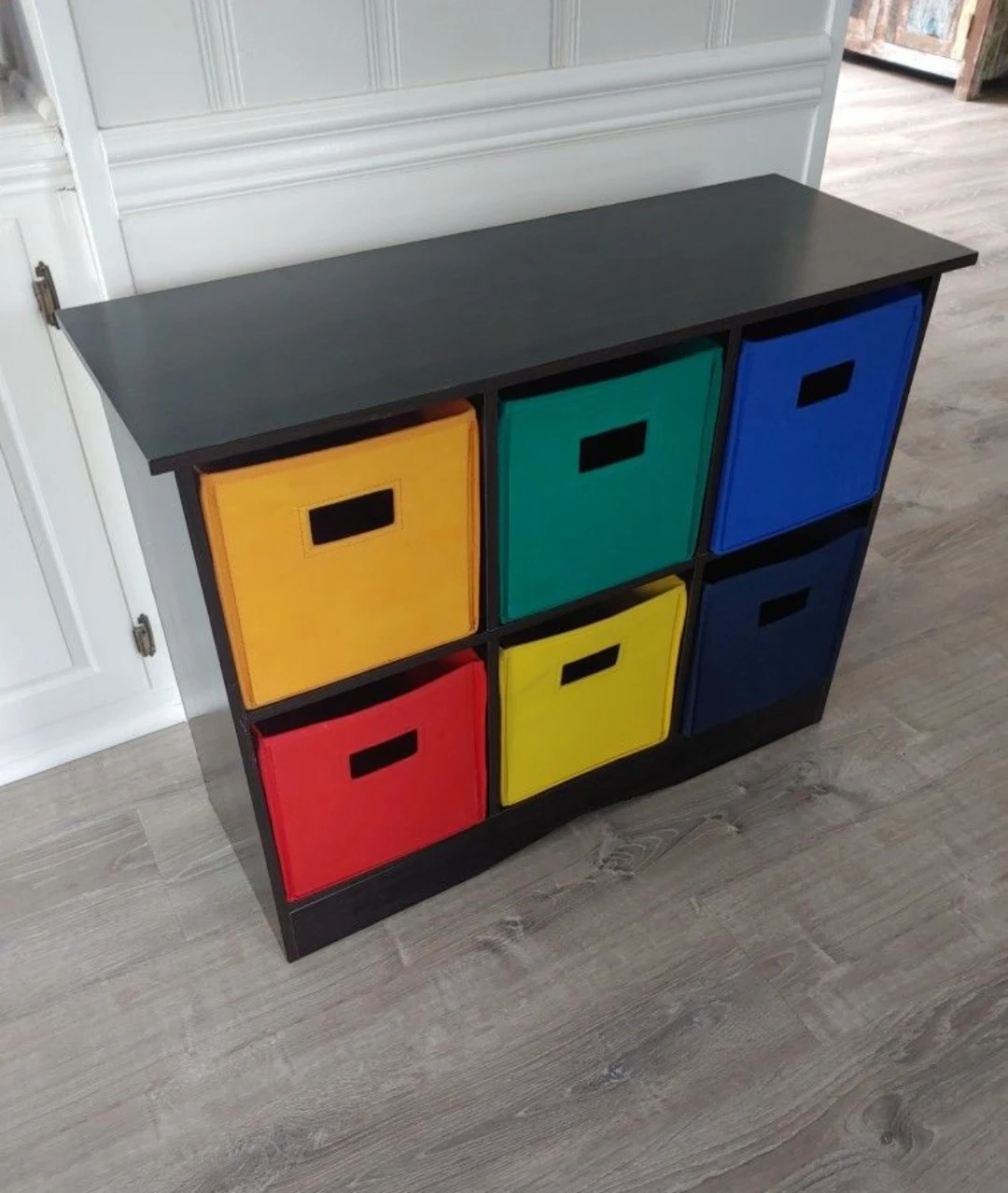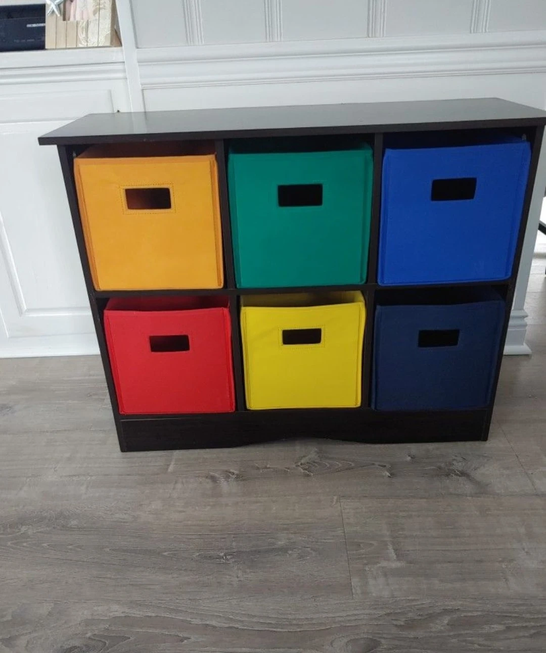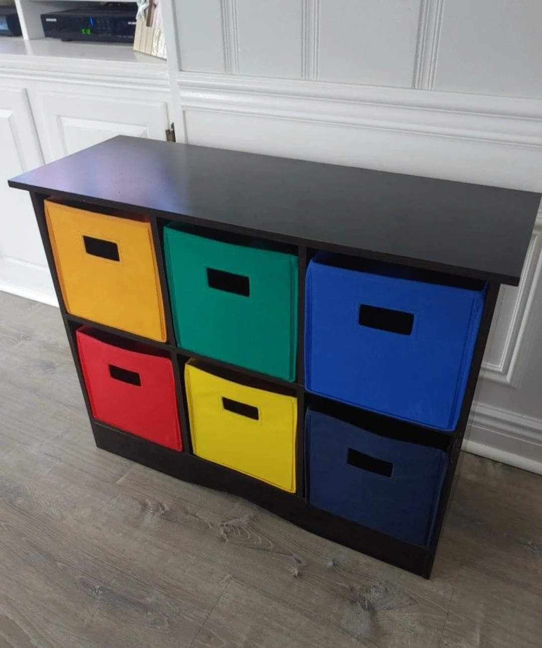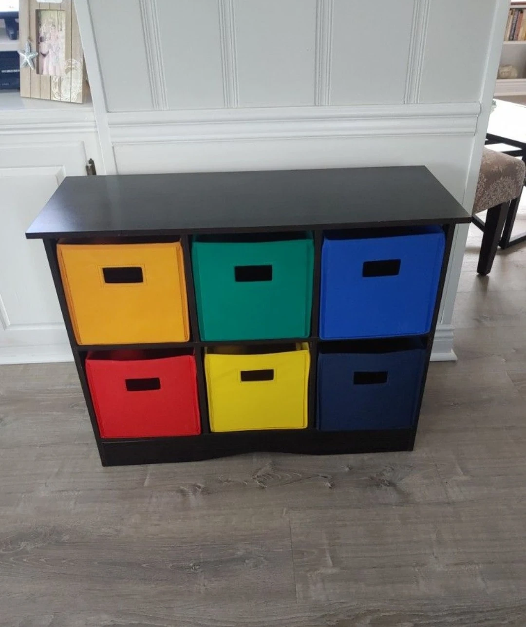 15This is a great storage unit for kids! It features six colorful cubes in red, yellow, green, and blue. It is in great condition and ready to organize your little one's toys or clothes.