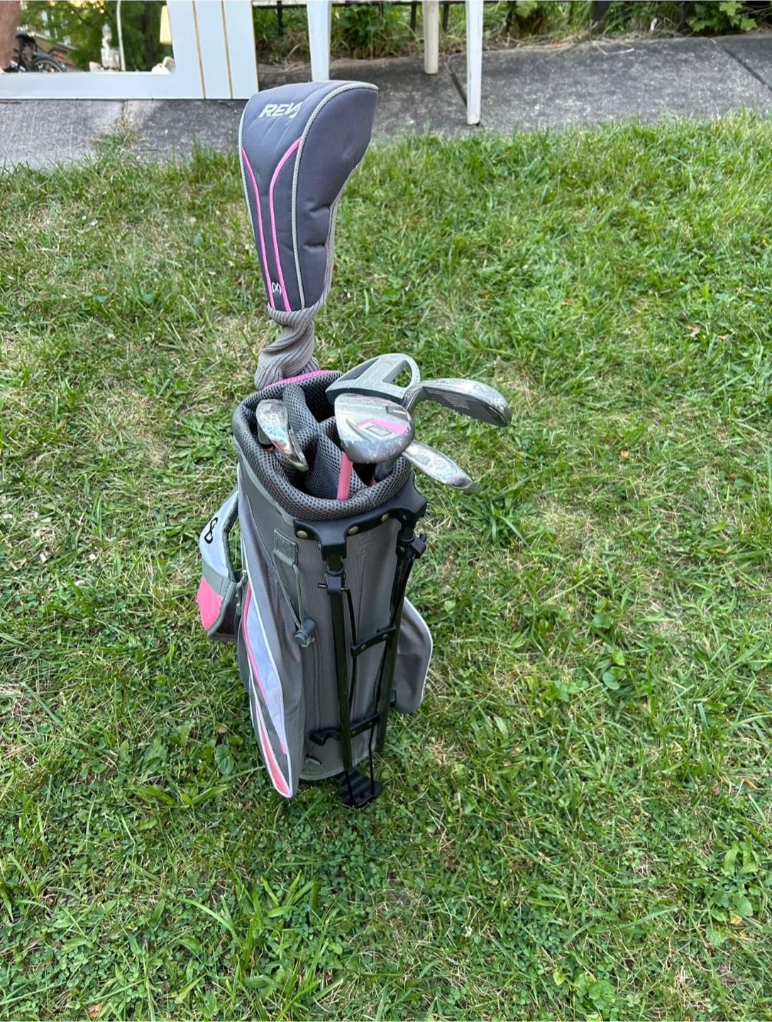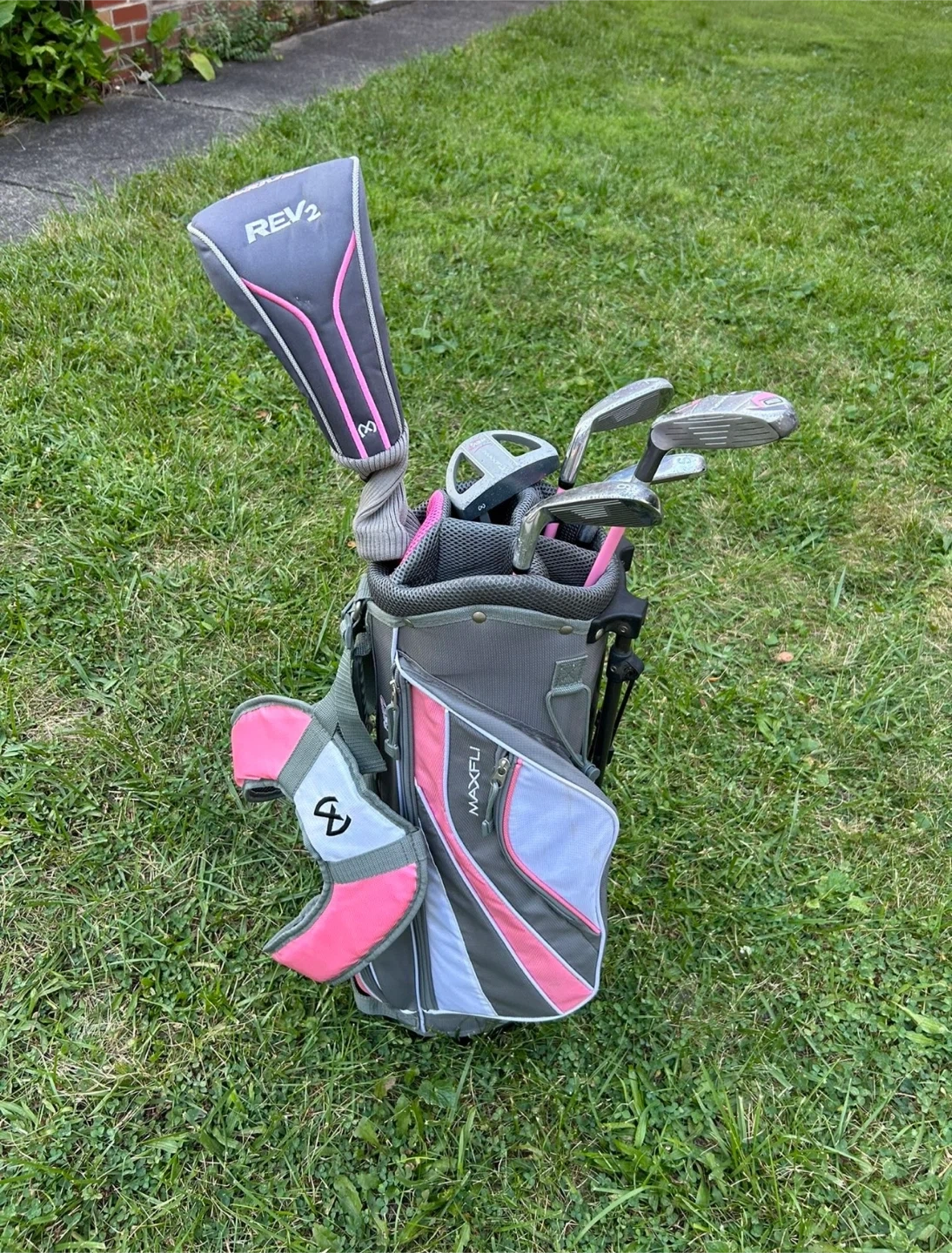 23Selling a Maxfli Rev2 golf club junior right hand set in pink and gray! This set includes a driver and multiple irons. Perfect for someone looking to get started with golf or upgrade their current set!