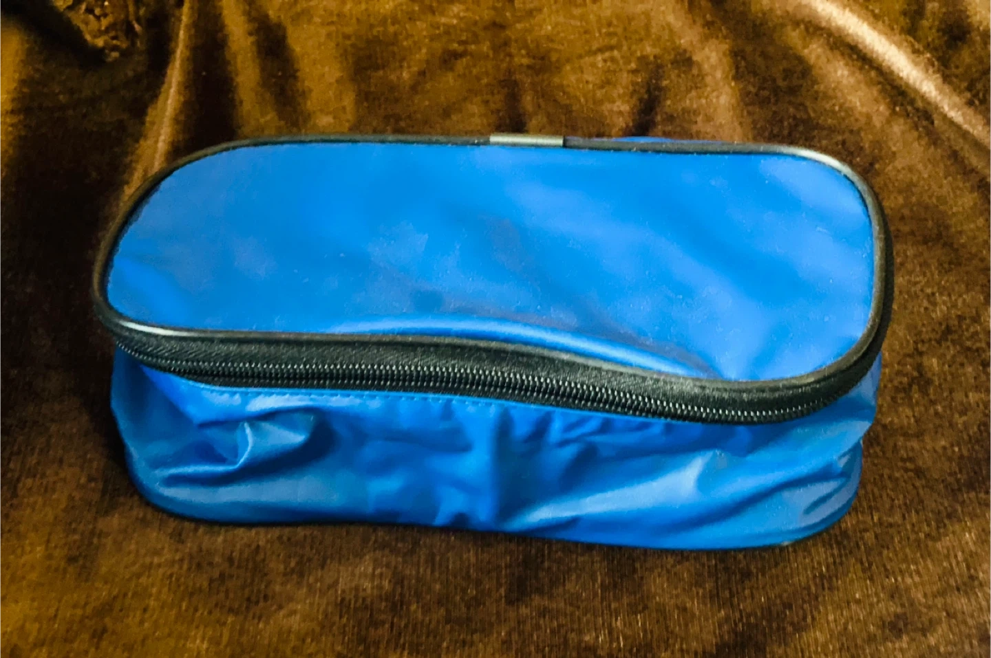 51This is a blue travel toiletry bag. It's in good condition and ready for your next trip! It has a zipper to keep everything secure and a convenient size for packing